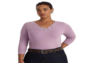 Ralph Lauren Women's Lace Trim Stretch Cotton Top Purple Size 2X