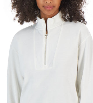 Tommy Hilfiger Women's 1/2 Zip Solid Cropped Sweatshirt White Size Medium