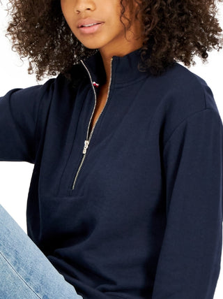 Tommy Hilfiger Women's 1/2 Zip Solid Cropped Sweatshirt Blue Size Medium