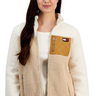 Tommy Hilfiger Women's Colorblocked Zip Up Jacket Brown Size X-Large