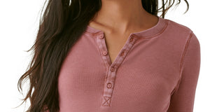 Bass Outdoor Women's Warm Button Front Waffle Knit Henley Top Red Size X-Small