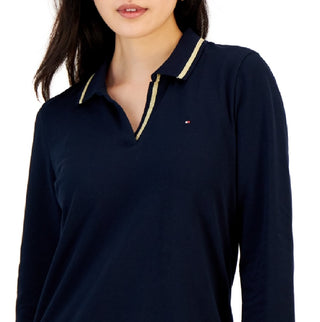 Tommy Hilfiger Women's Johnny Collar Rugby Dress Blue Size Large