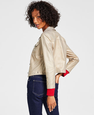 Tommy Hilfiger Women's Foil Cropped Trucker Jacket Yellow Size Medium