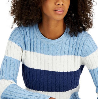 Tommy Hilfiger Women's Flag Logo Colorblocked Cotton Cable Knit Sweater Blue Size Small