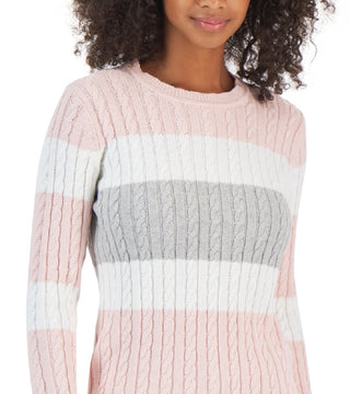 Tommy Hilfiger Women's Flag Logo Colorblocked Cotton Cable Knit Sweater Pink Size X-Small