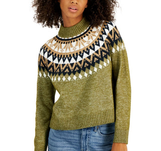 Tommy Hilfiger Women's Half Snowflake Raglan Sweater Green Size Large