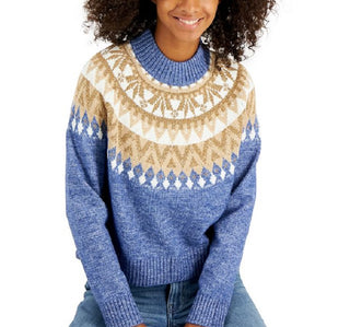 Tommy Hilfiger Women's Half Snowflake Raglan Sweater Blue Size Large