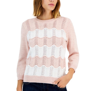 Tommy Hilfiger Women's Cotton 3/4 Sleeve Sweater Pink Size Medium