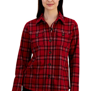 Tommy Hilfiger Women's Collared Plaid Shirt Jacket Red Size Medium