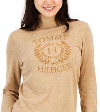 Tommy Hilfiger Women's Tonal Crest Logo Stella Cotton Sweater Brown Size Large