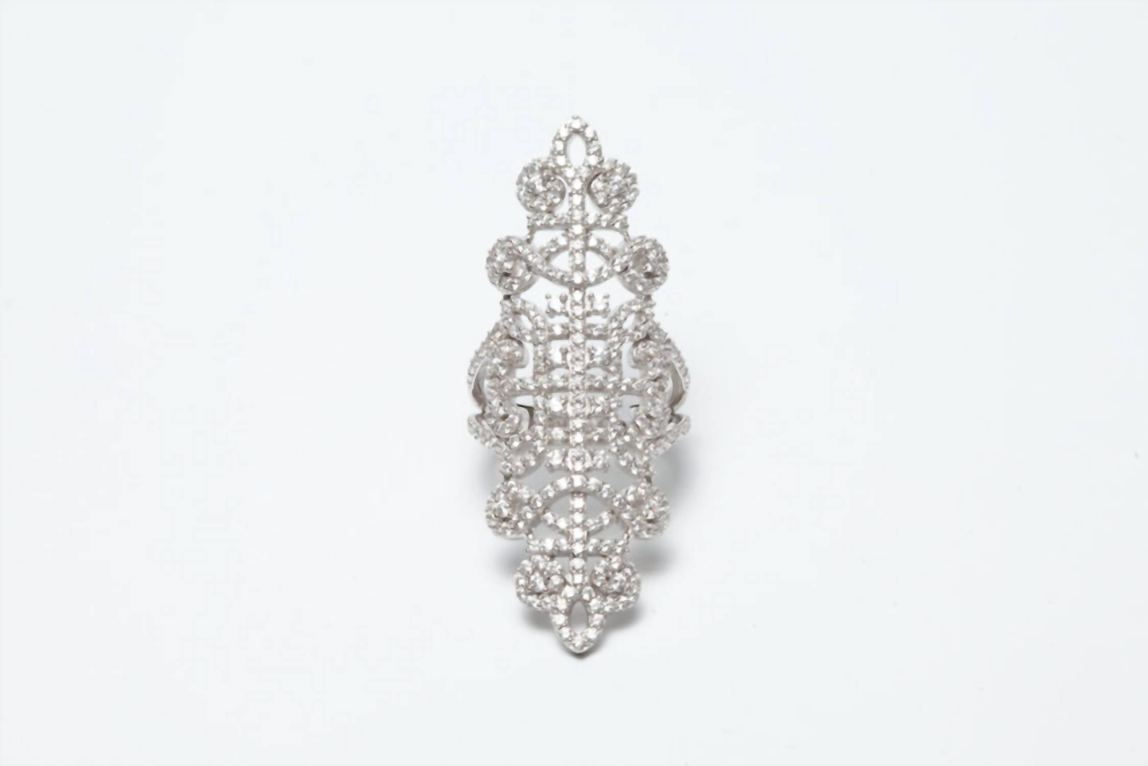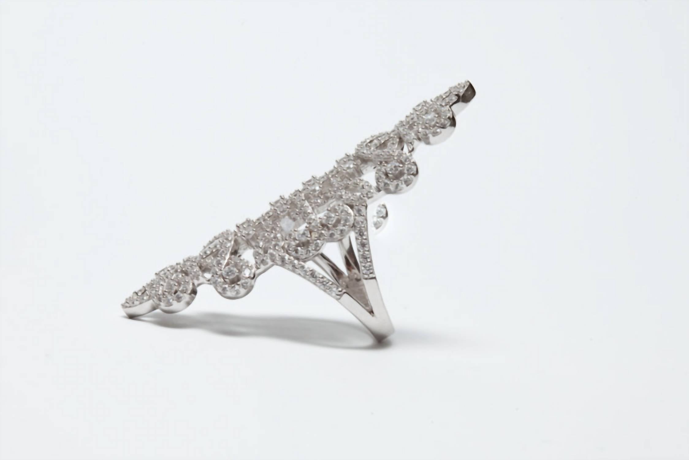 Wear this ring stacked or by itself... you can't go wrong. Make a bold entrance with the Women's Statement Lace Ring by Avenue Chic, a stunning piece that adds elegance to any outfit. Crafted from sterling silver, this fashion ring showcases brilliant white, colorless cubic zirconia stones. The bead setting style enhances the shine, making it a timeless addition to your jewelry collection. Featuring simulant stone origins, this piece brings sophistication and style to your ensemble.