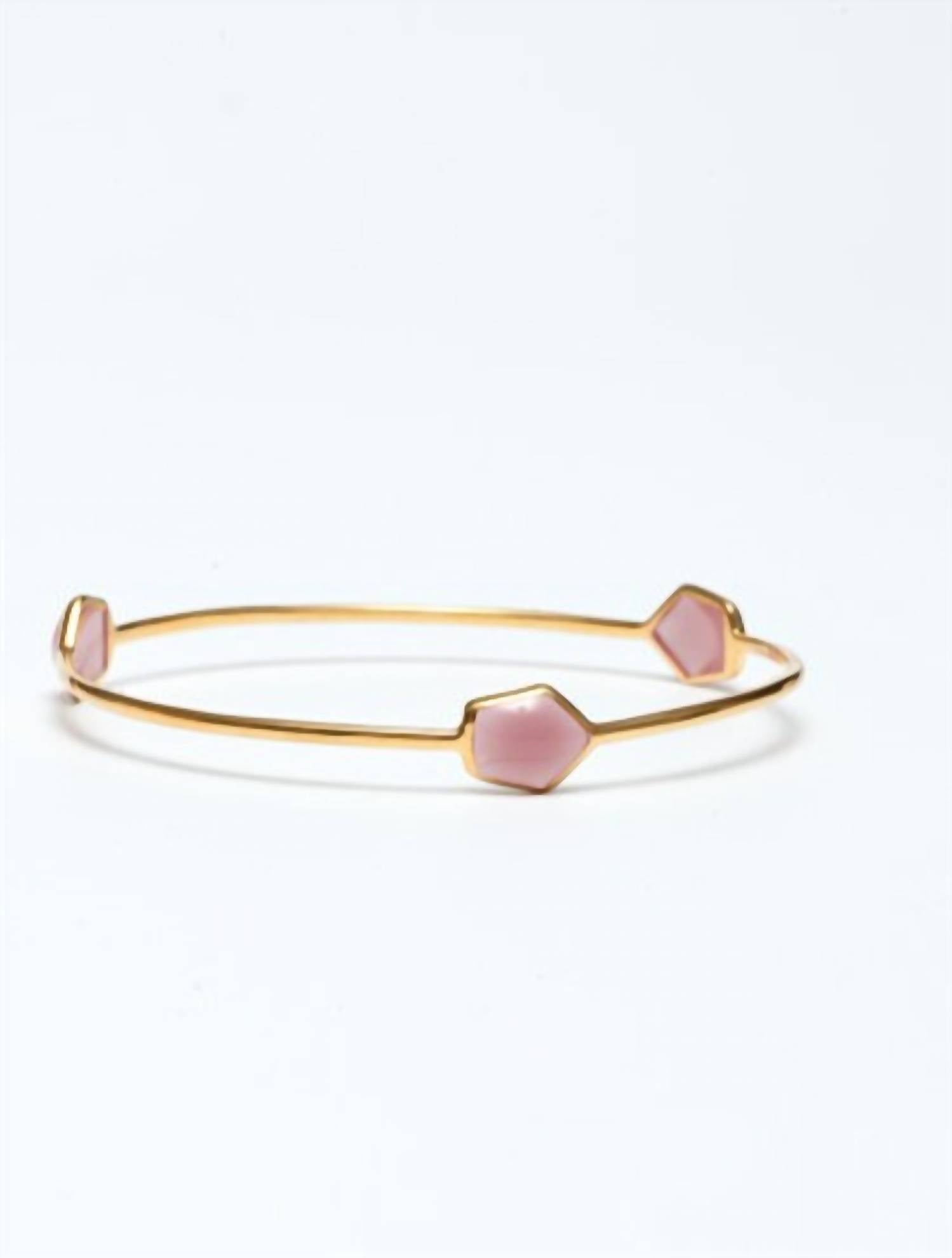 Introducing the Women's Vesta Stacking Bangle by Avenue Chic, a striking piece in a chic pink hue. This fashion bracelet features a stunning pink simulant stone and sleek gold plating for a luxurious finish.