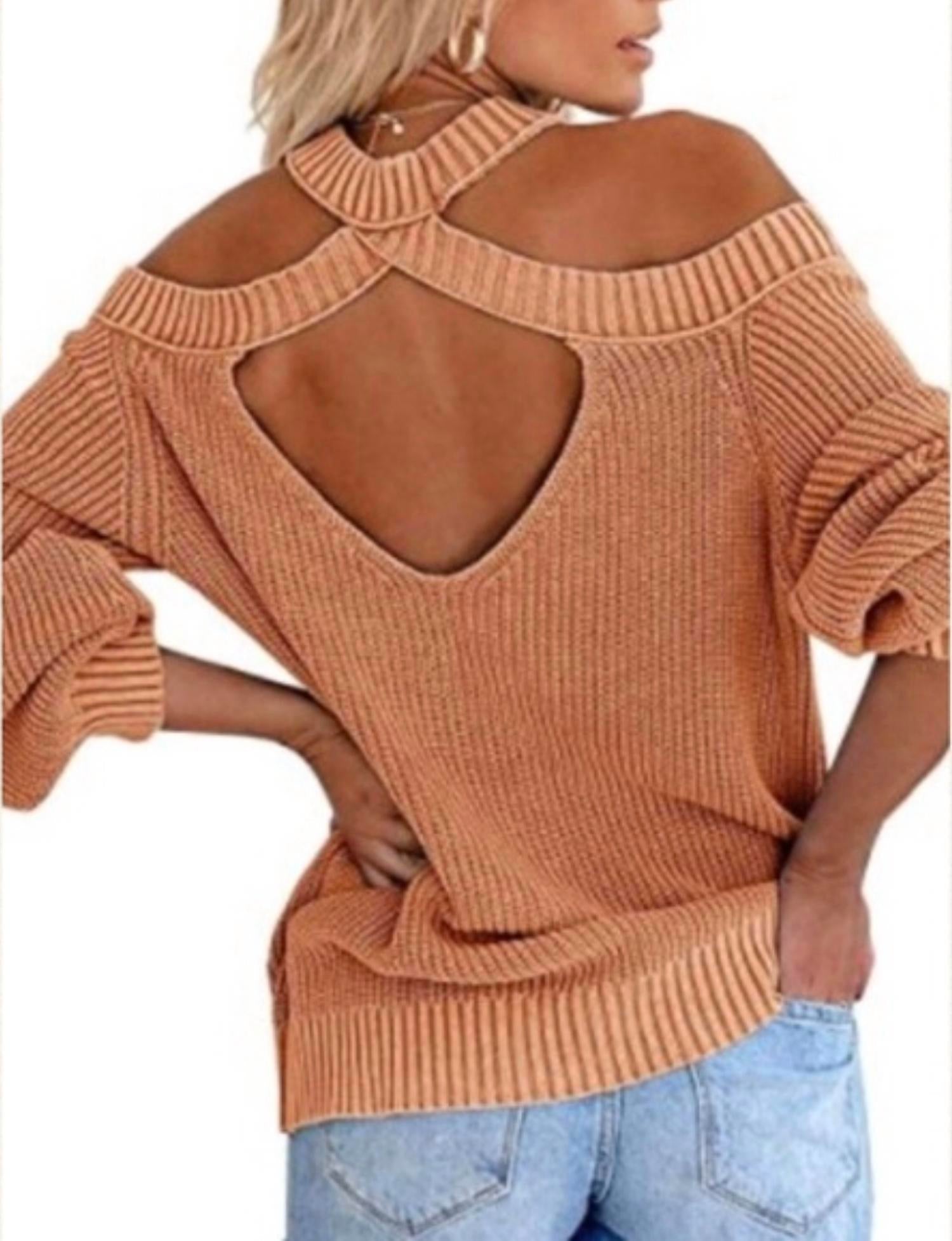Show a little skin in this perfectly designed off-the-shoulder sweater. Off shoulder long sleeves knit top. Soft cozy knit fabric shapes this chic knit top with a round neckline and cold shoulder, relaxed long sleeves and bodice. Chic and trendy to pair this top with jean. Oversized fit.