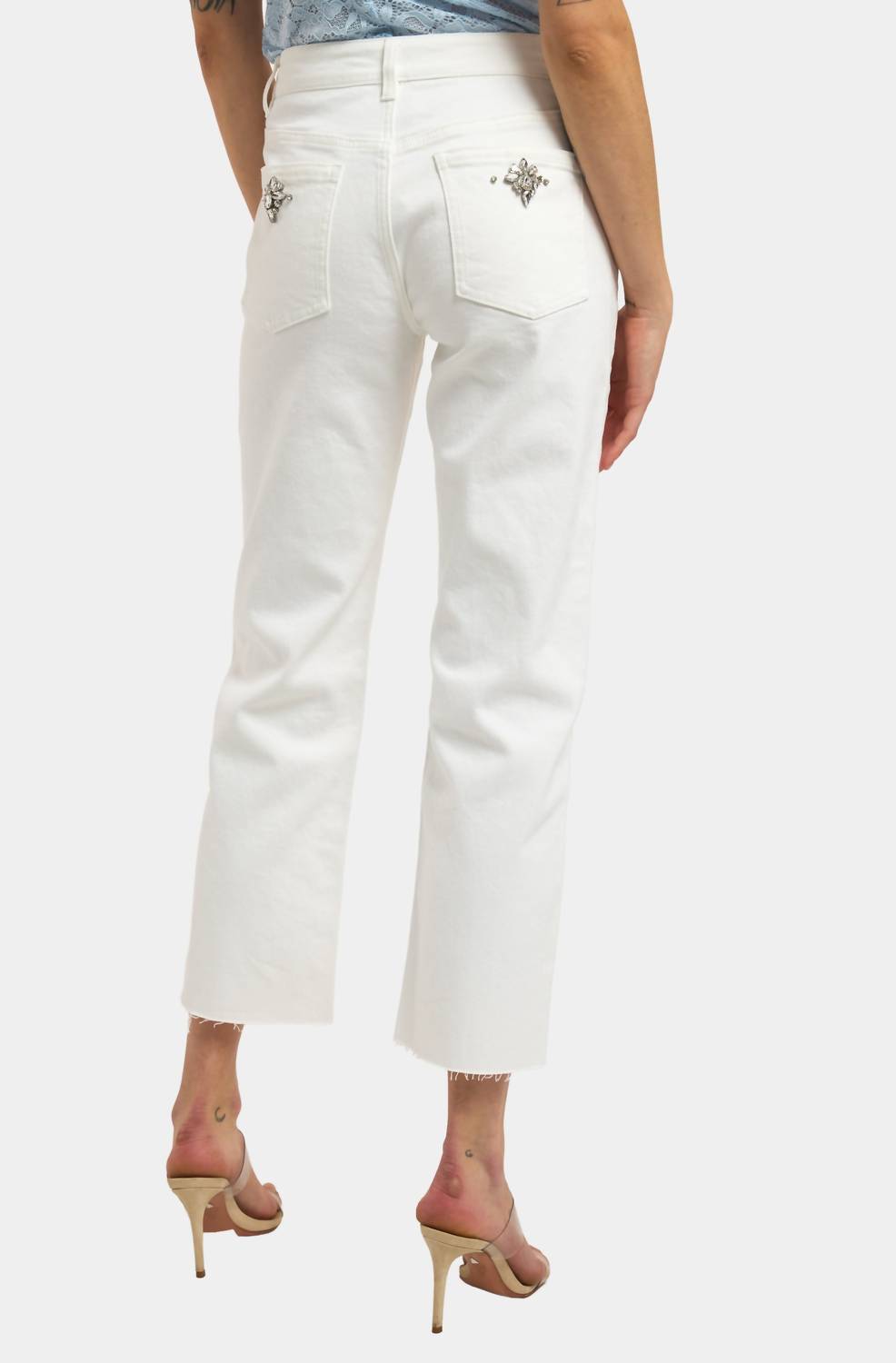 Unveil your inner fashionista with the Carolyn Crystal Denim Pants by Generation Love, an essential piece for any stylish wardrobe. These trousers boast a contemporary wide-leg silhouette and feature exquisite crystal-embellished front pockets. Crafted from denim, they embody a light wash texture with a slim fit and mid-rise waist, ideal for a boho chic spring look. Closure: Zip closure. Care: Machine wash and tumble dry. Perfect for an evening event or Thanksgiving gathering.