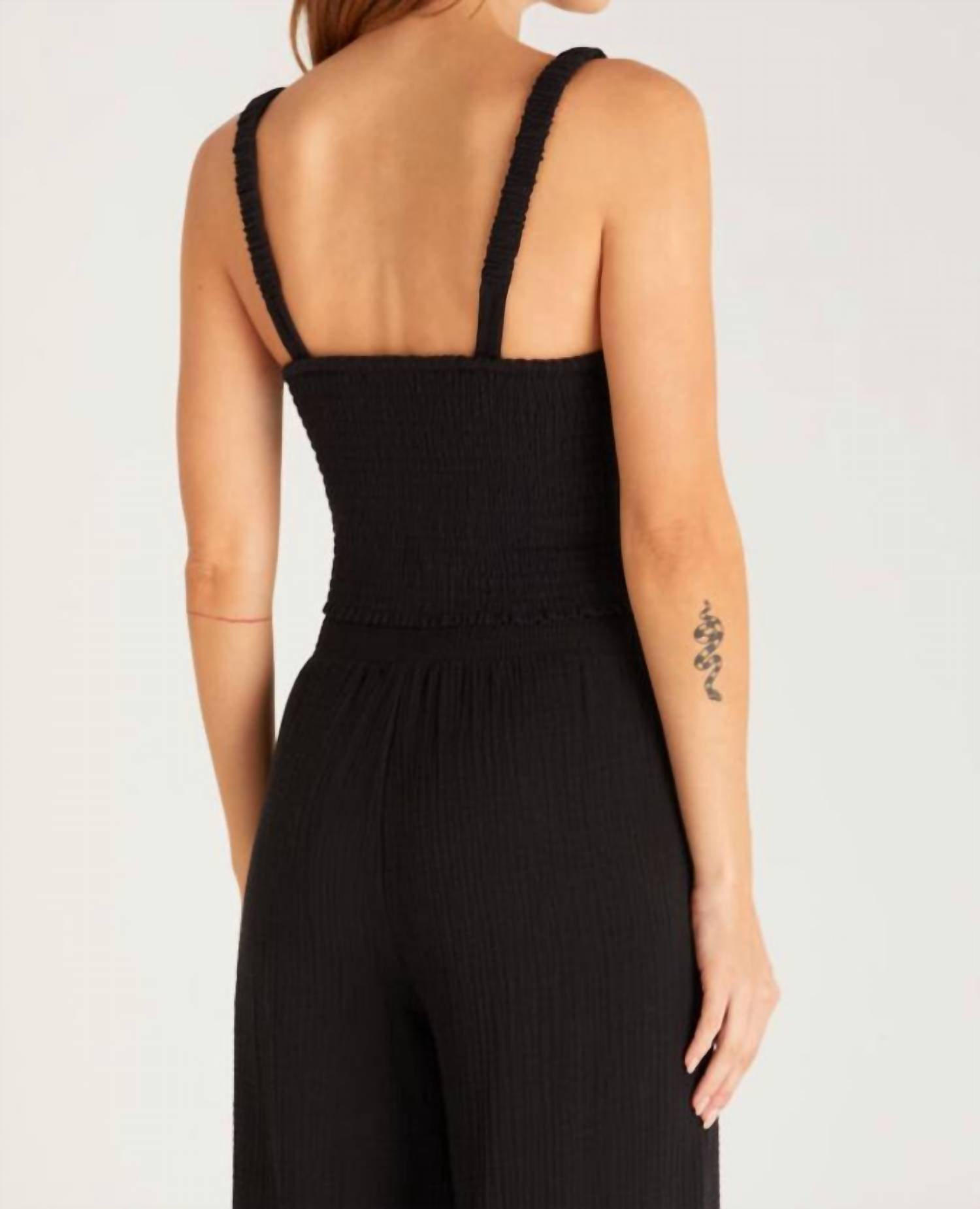 Pair this crop top with your favorite high-waisted jeans or maxi skirt. Incorporating the crop top trend with a flattering neckline, this fitted top is made from our Double Gauze fabric and features elastic straps, a fully smocked back and hits at the waistband. Machine wash cold, turn inside out, gentle cycle, wash with like colors, do not bleach, hang to dry, steam only, ***wash before wearing***. Double Gauze 100% Cotton.