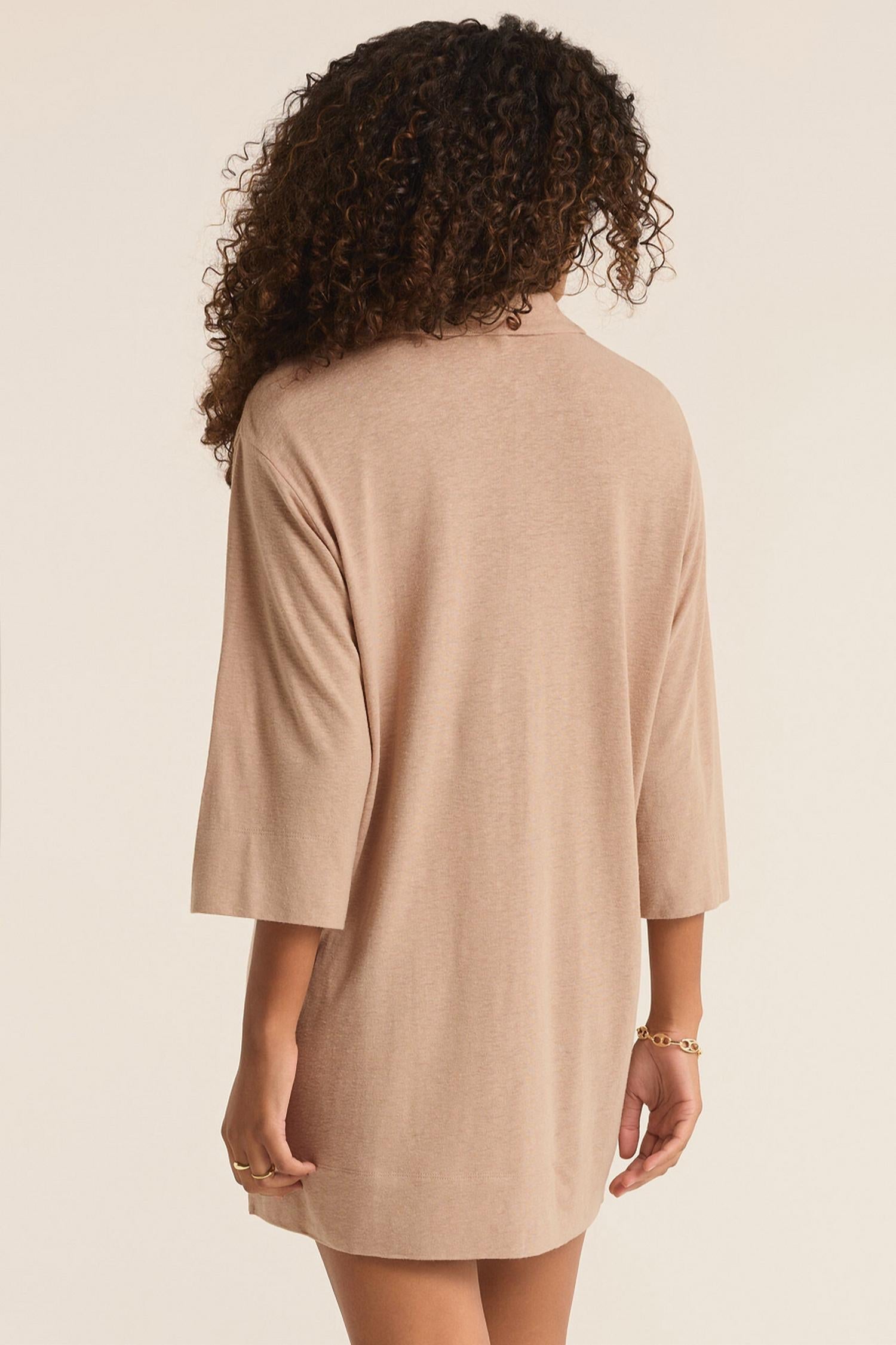 The perfect mini dress for those warmer months. The Mallory Slub Cover Up features a collared design with a Henley placket and dropped shoulder short sleeves. It is 32 inches long from the shoulder and offers a relaxed fit. Made from a linen blend, it consists of 55% linen and 45% rayon.