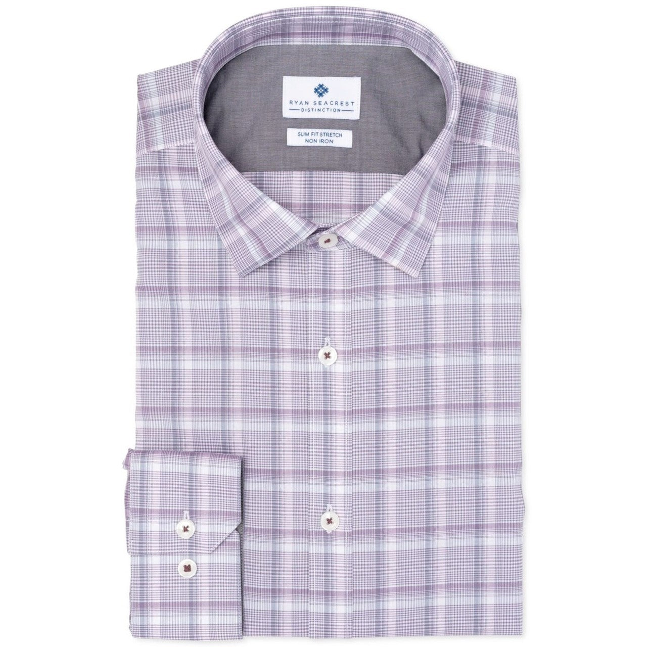 Ryan Seacrest Men's Slim Fit Button-Down Dress Shirt Purple Size 15X32-33