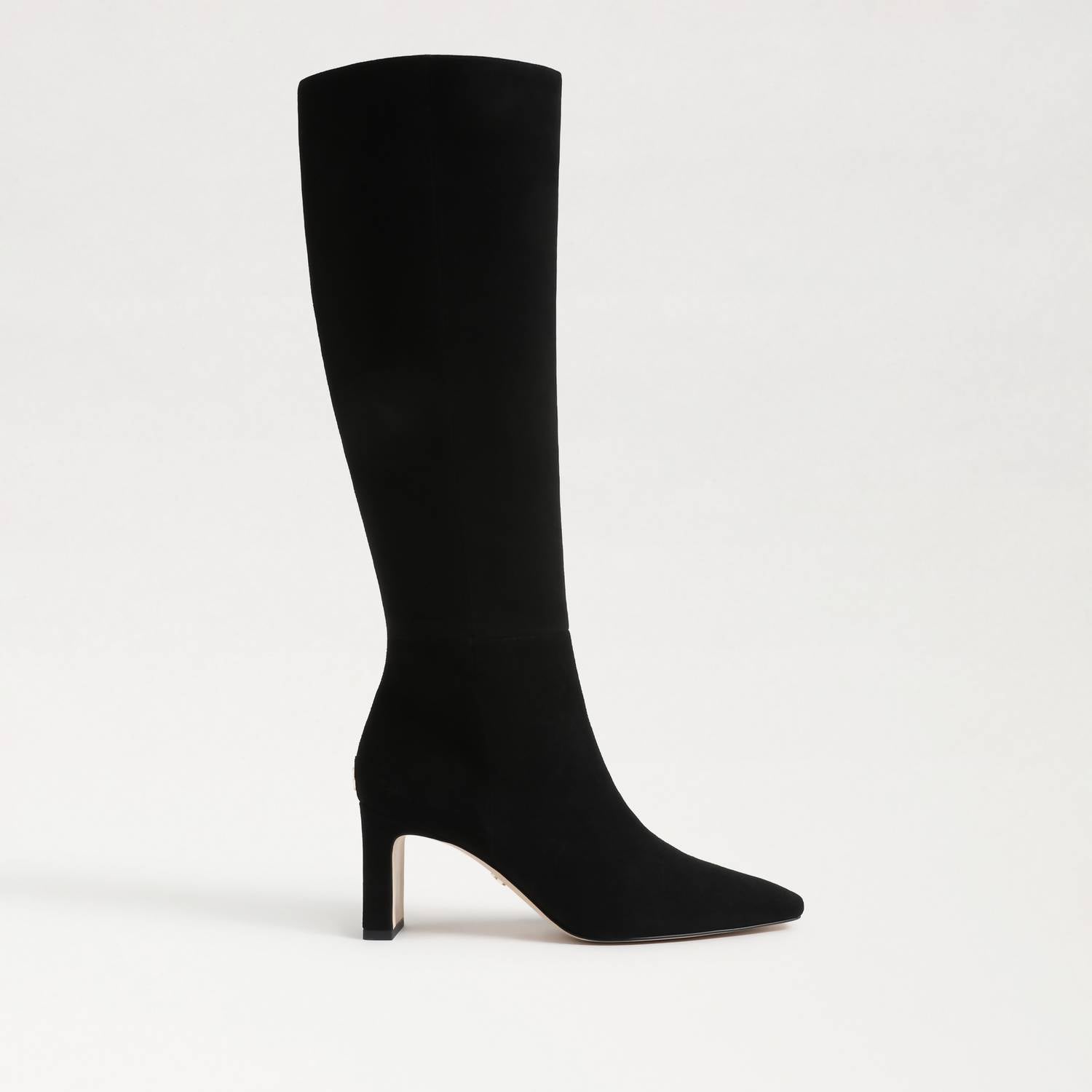 A trend that is here to stay. Enhance your collection with the Women's Sylvia Knee High Boot by Circus by Sam Edelman, presented in striking suede. This elegant boot showcases a towering silhouette with a sleek pointed toe and a convenient zipper closure, perfect for pairing with slim pants or a chic dress. With a mid-block heel height of 2.8 inches, the boot features a 15.7-inch shaft height and a 14.1-inch calf circumference based on size 6, offering a luxurious combination of leather and synthetic materials. Designed for comfort, it also features a synthetic insole.