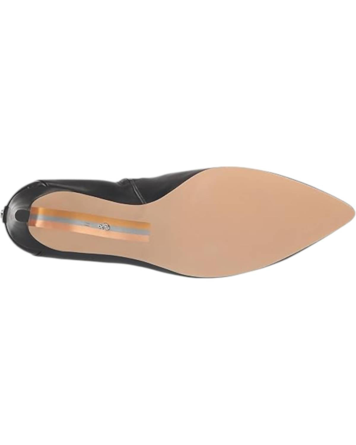 Upgrade your shoe game with these classic heeled boots, designed to merge sophistication and style. Comfortable enough for long days or a night out on the town. Introducing the Usha Ankle Bootie by Sam Edelman, a sleek choice for any ensemble in classic black. Crafted from premium leather, this bootie features a pointed toe and chic stiletto heel with a heel height of 2.5 inches. The design includes a zipper closure, a 5.3-inch boot shaft, and a 10.2-inch calf circumference for a tailored fit. Insole: Synthetic. Perfect for adding a sophisticated touch to your wardrobe.