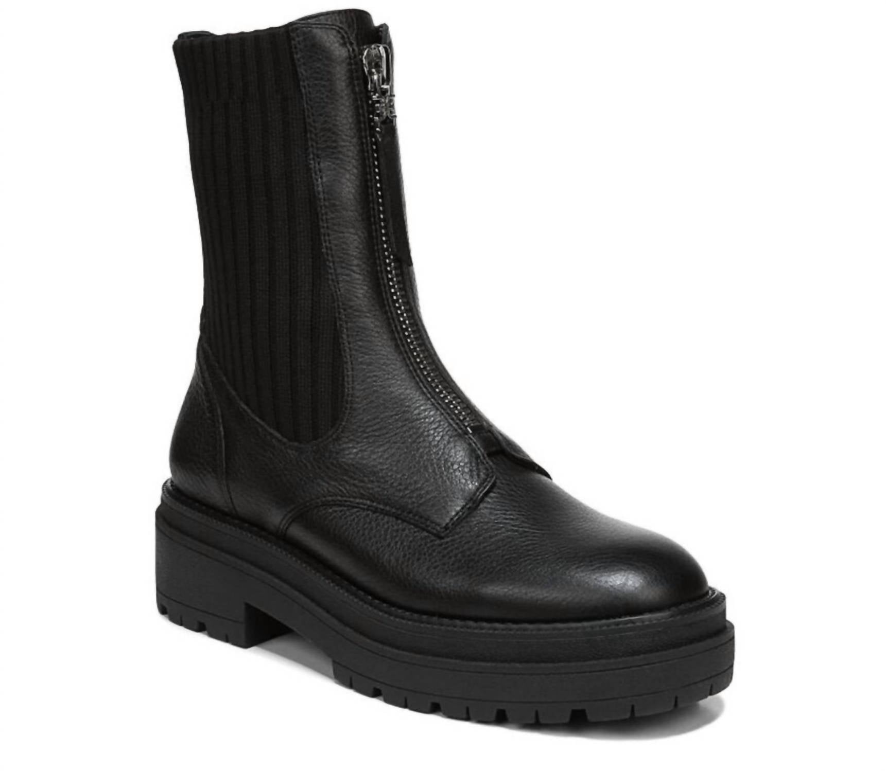 Step out in confidence and showcase your impeccable taste with these fashionable and versatile boots. Their classic style will have you reaching for these boots season after season. Step into style and comfort with the Women’s Winniford Zip Boots by Sam Edelman, expertly crafted from smooth cowhide leather in sleek black. Featuring a ribbed knit inset and silver-tone hardware, these boots boast a mid-height platform profile with a substantial rubber lug sole for added durability. Heel measures 2 inches (50mm) and platform height is 1.25 inches (30mm), perfect for elevating your look effortlessly. Made in India, these boots close with a convenient zip, while leather lining ensures comfort; please note, this item cannot be gift-boxed.
