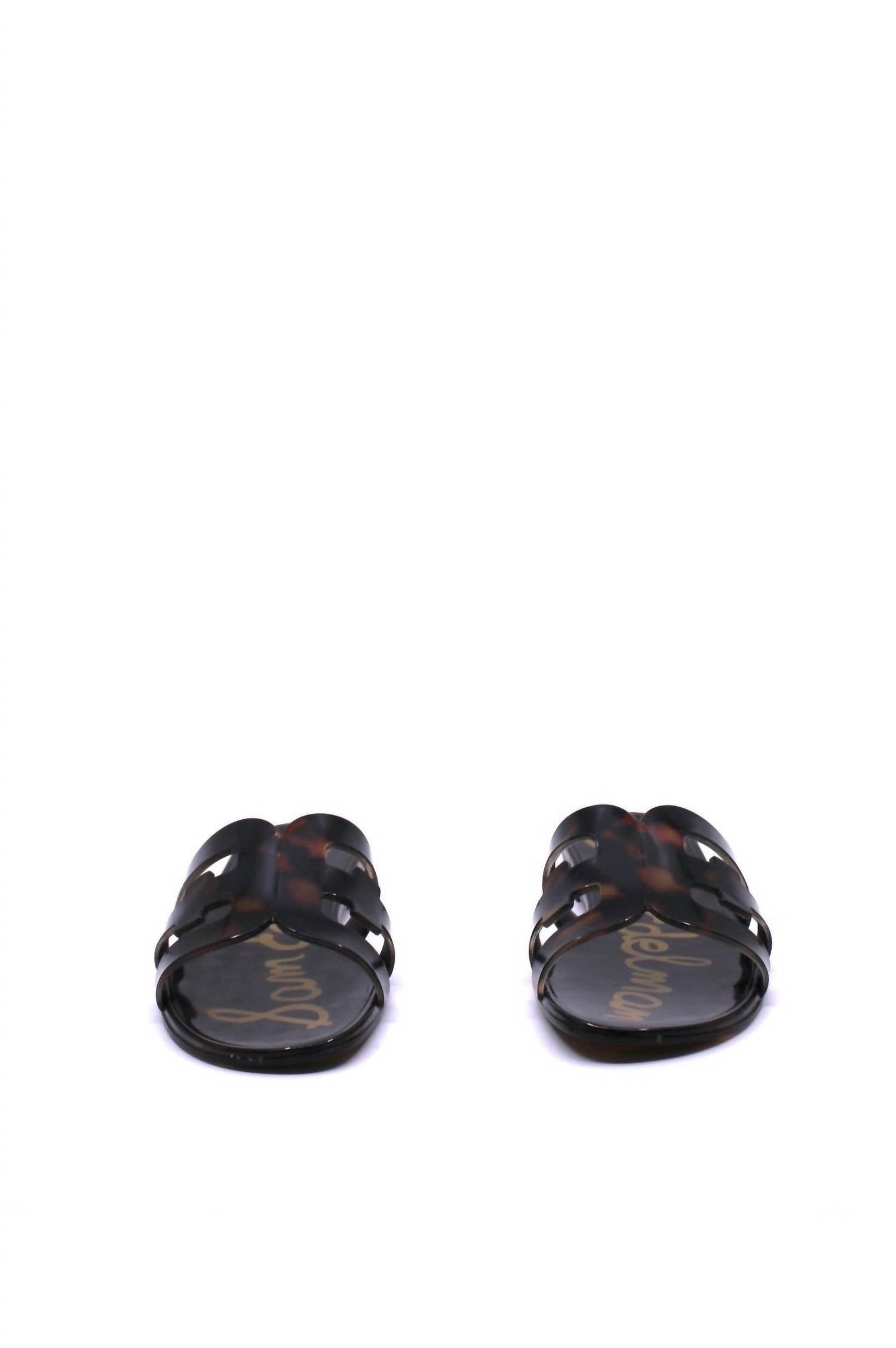 Step into style with the Women's Bay Jelly Tortoise Sandals by Sam Edelman, a boho chic essential for your summer wardrobe. These sandals feature a trendy open toe design and a flat heel height of 0.5 inches, offering comfort and flair. Made from glossy PVC material, they come in a striking tortoise color. Closure: Slip-on. Ideal for vacations and warm weather outings.