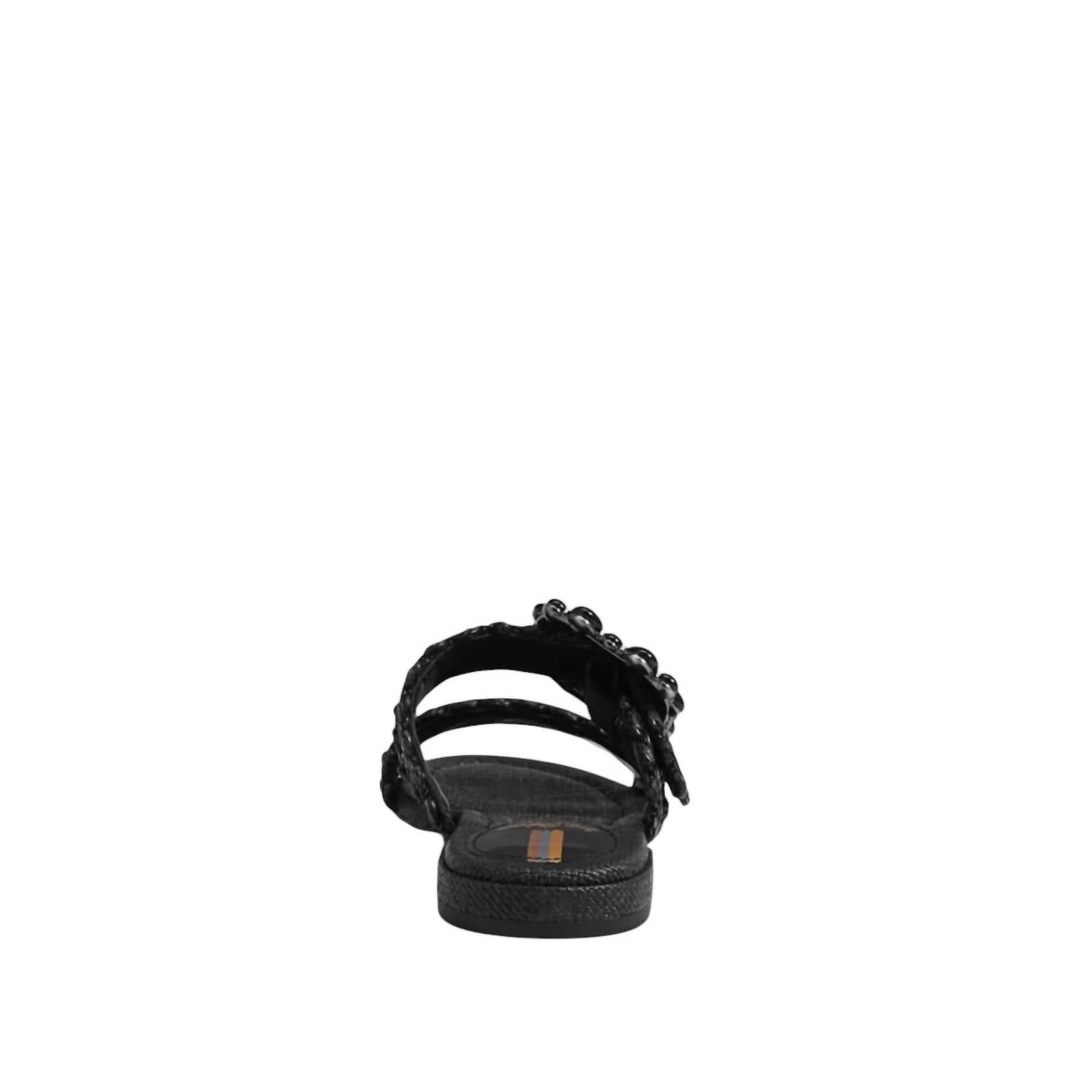 The Sam Edelman Women's Elisa Slide Sandal in Black combines elegance and ease. With a floral woven design, cabochon frame buckle, and scalloped trim, these lightweight rubber slides offer style and comfort. Featuring a 0.62-inch heel and plush synthetic insole, they're perfect for effortless spring looks.
