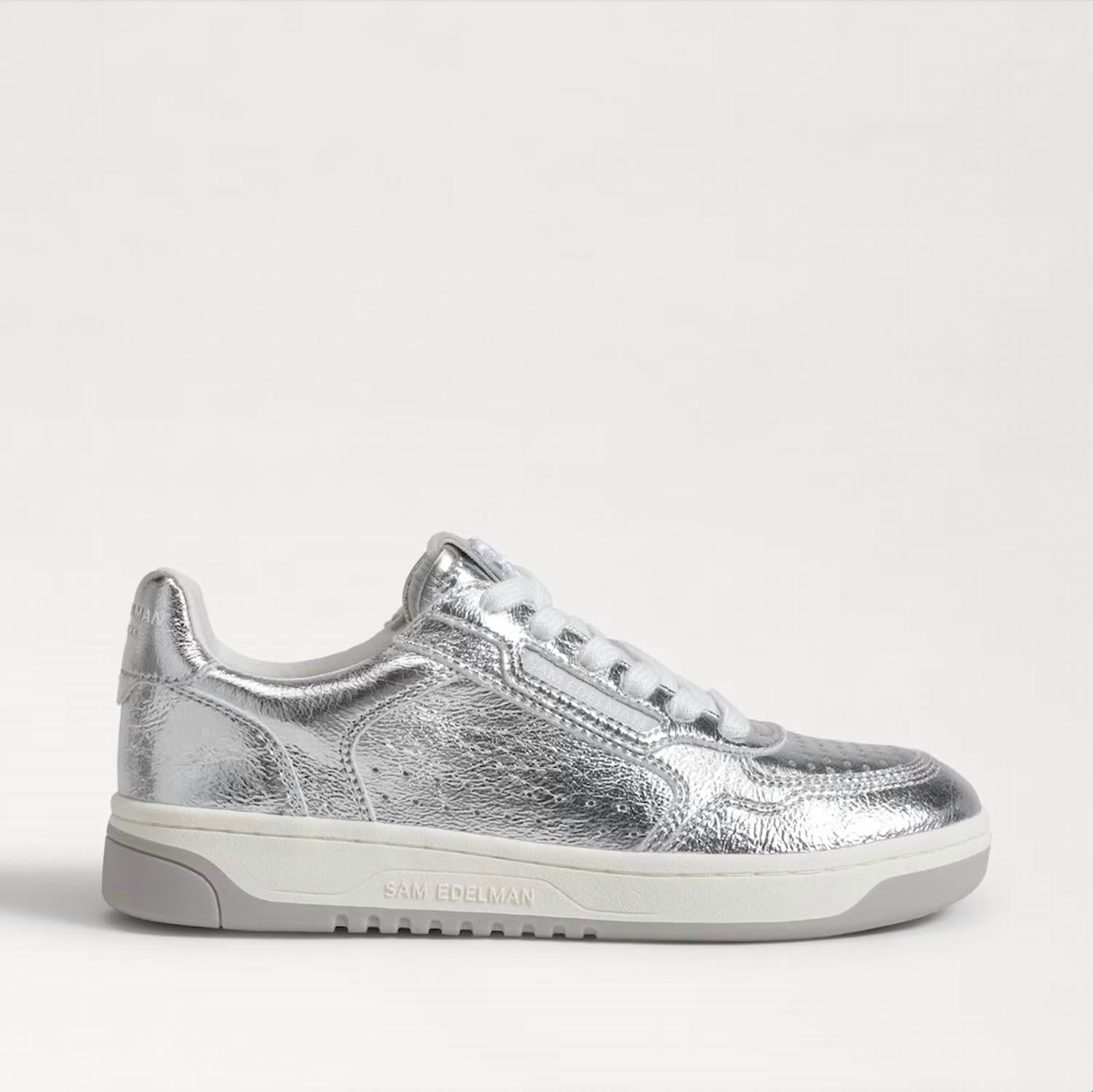 Discover the Women's Harper Shearling Lace Up Flat Fashion Low Top Sneakers by Sam Edelman, a chic addition to your sneaker collection with a modern twist. Featuring an almond toe design and a subtle 1.12-inch platform heel, these sneakers offer both style and comfort. Crafted from a blend of leather, fabric, and synthetic materials, they are punctuated with contrast detailing for a standout look. Perfect for fall travel and Thanksgiving outings, these versatile sneakers in soft silver are a must-have.