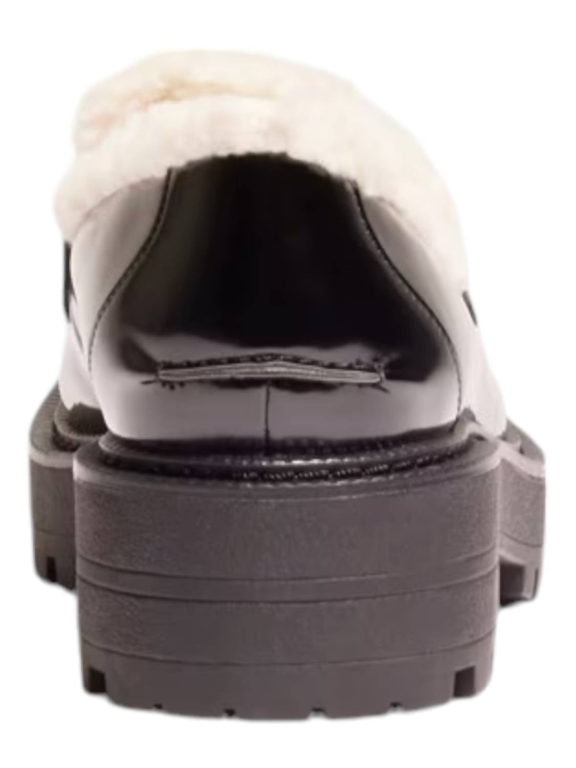 Shearling-lined for comfort. Lug-sole oxford design. Rounded toe. Heel height: 1.6 inches. Synthetic and fabric materials. Fabric insole.