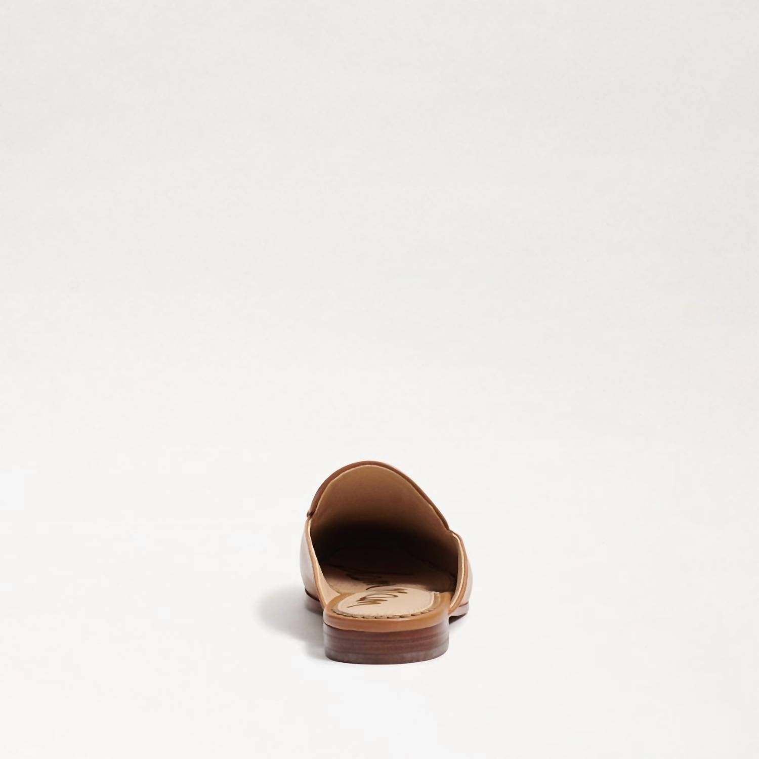 Discover the Women's Linnie Chain Embellished Slip On Almond Toe Flat Mule by Sam Edelman, a chic addition to your wardrobe in Saddle Leather. Featuring a slip-on design with an almond toe, these mules have a leather upper, leather lining, and a rubber sole for enduring comfort. A 0.5-inch flat heel adds understated elegance, perfect for pairing with both casual and formal outfits. Ideal for the fall season and suitable for occasions like Thanksgiving dinner parties.