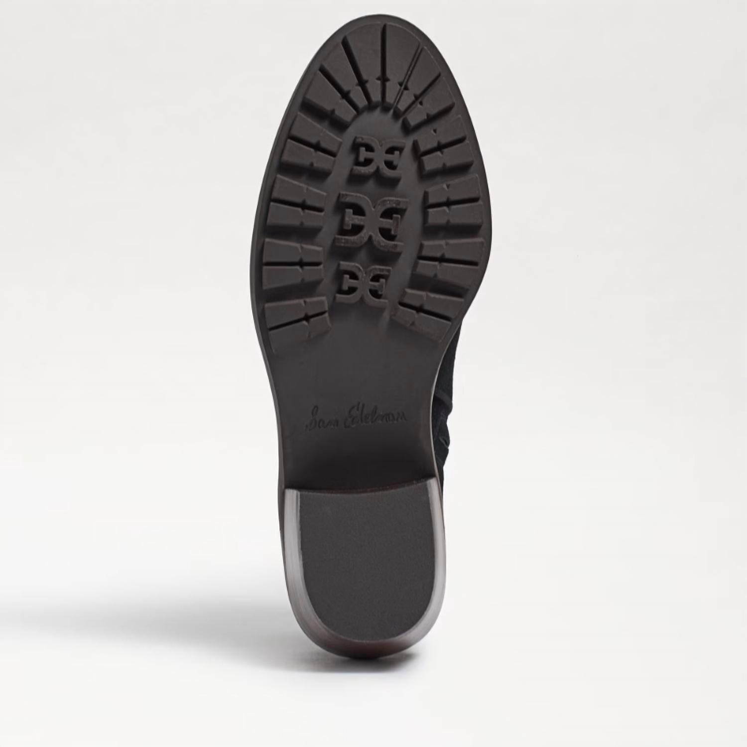 Elevate your autumn style with the Sam Edelman Women's Pryce Leather Round Toe Stacked Heel Slip-on Ankle Boots. Designed in elegant black, these boots feature a leather upper with a suede finish and a chic round toe silhouette. The slip-on style is enhanced by a convenient side zipper closure, ensuring an easy fit. The boots come with a manmade insole, lining, and outsole, all imported to guarantee quality craftsmanship. Perfect for Thanksgiving and any holiday party, these ankle boots boast a block heel, ideal for a fashionable yet comfortable stride.