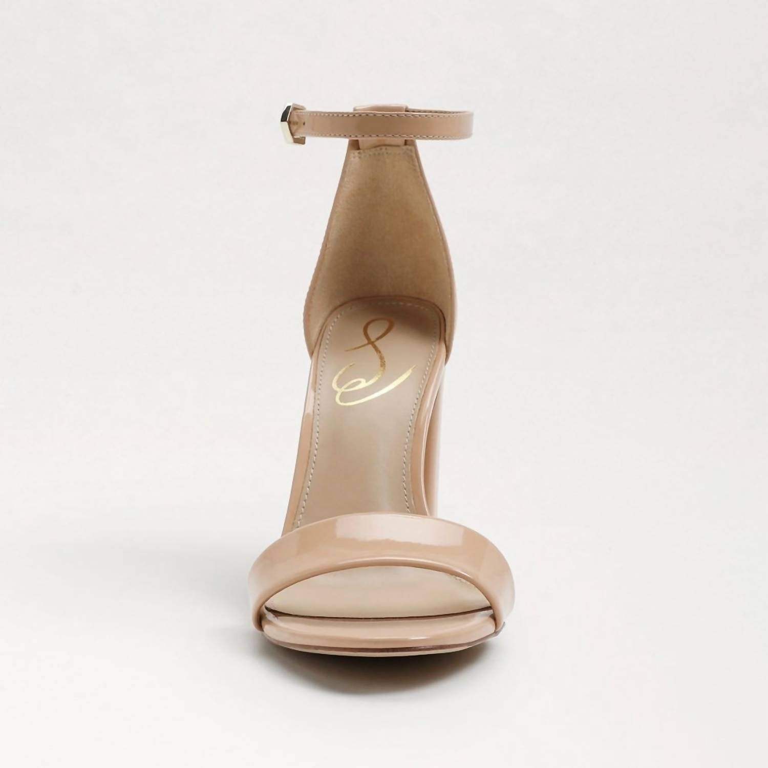 Don't be deceived, these heels are comfy as can be. Step out in style with the Sam Edelman Women's Yaro Block Heel Sandals, a chic choice in Beige Blush Patent perfect for any occasion. These sandals feature a confident 4-inch high block heel and an elegant ankle strap with a buckle closure. Designed for comfort and sophistication, they are crafted with a patent material and a synthetic insole, making them ideal for pairing with a slip dress or cropped trousers. Embrace quiet luxury and elevate your spring wardrobe with these must-have heels.