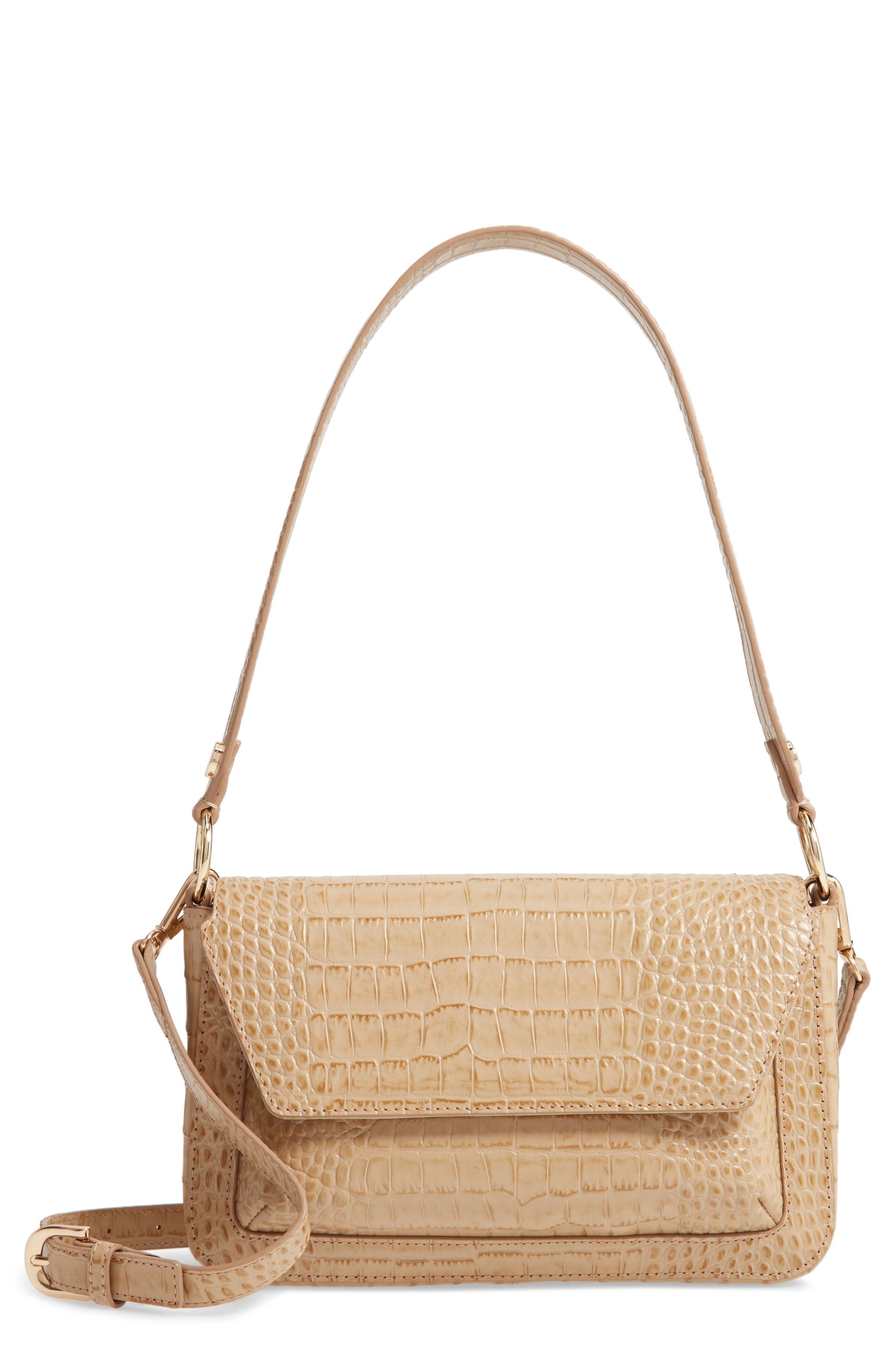 Nordstrom Stella Croc Embossed Leather Shoulder Bag Brown