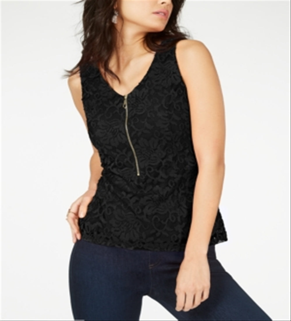 Classic charm meets modern detailing with this zippered-front top by Thalia Sodi| covered in lovely lace.| Hits at hip| V-neck; zipper closure at front| Lace overlay throughout| | Body; polyester/spandex; lace; polyester