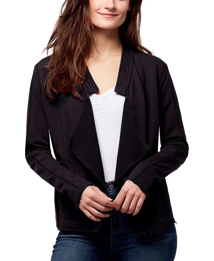 William Rast Women's Cotton Wing Lapel Raw Edge Jacket Black Size Large