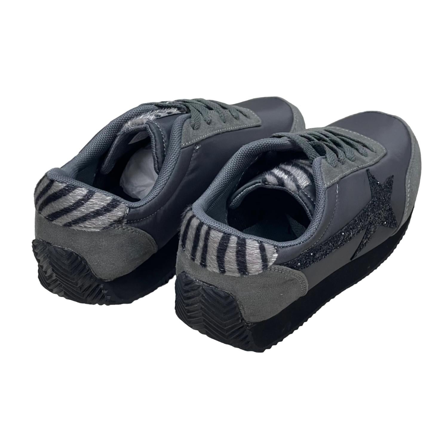 Get your daily steps in with these adorable sneakers.These sneakers feature a fabric upper with a lace-up closure and a glitter star on the side. The tongue and heel collar have a sparkle zebra print. They are designed for slip-on convenience, with a padded insole and a lightweight construction for comfort.