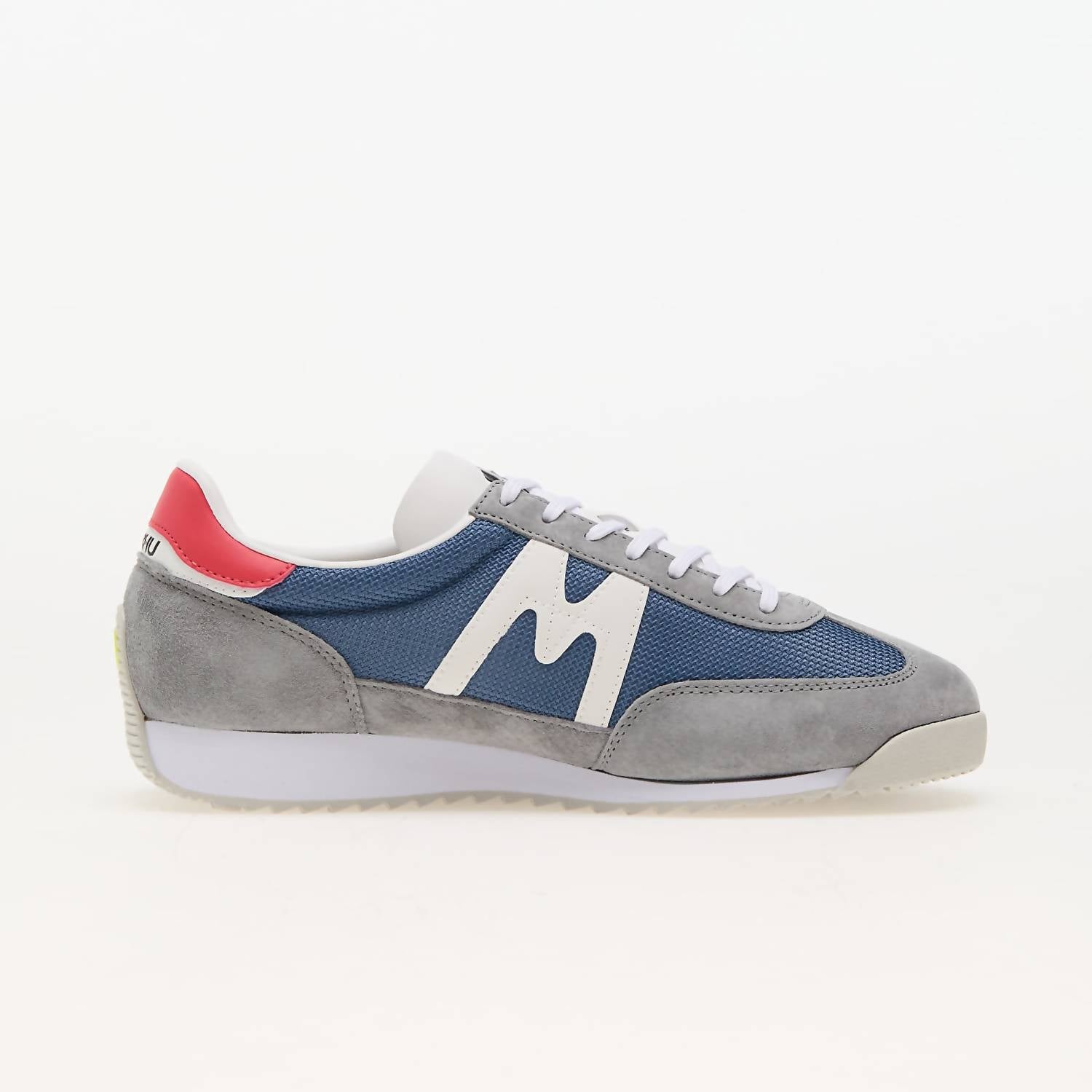 Experience sport-ready style with the Men's Mestari Sneakers by Karhu, blending practicality with streetwear edge. With a durable textile upper and rich suede detailing, these sneakers offer breathability and comfort in a sleek Ultimate Gray/White palette. The platform heel adds a subtle lift, while the EVA midsole provides superior shock absorption, paired with a round toe and flat heel design for all-day comfort. Featuring a sturdy rubber outsole for excellent grip on various surfaces, these sneakers are ideal for everyday wear.