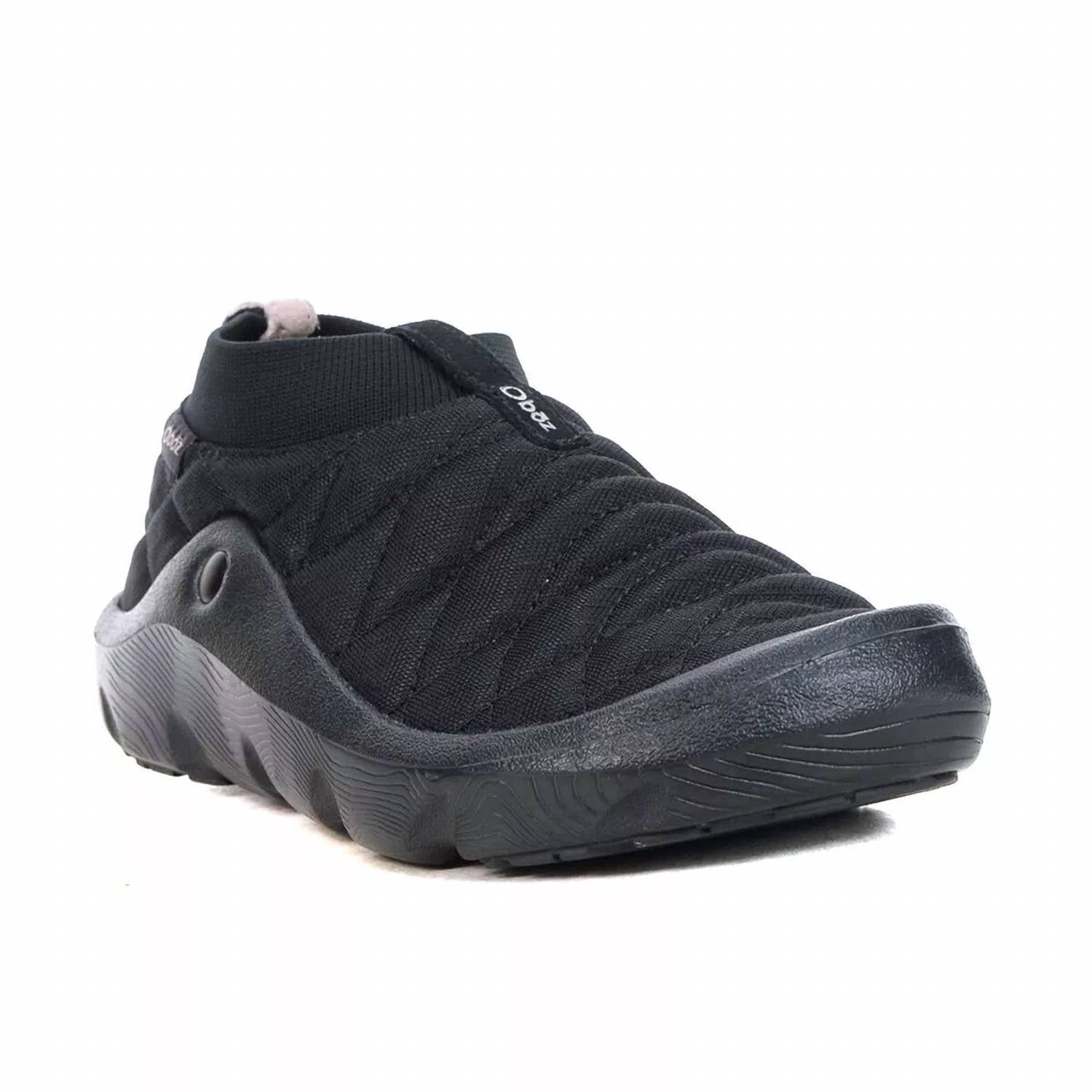 Introducing the Women's Whakata Puffy Slip On Insulated Shoes by Oboz, designed for comfort and sustainability. Enjoy the eco-friendly loom algae-blended resin footbed and midsole, paired with the durability of Cordura fabric and warmth from Primaloft Bio 100g insulation. These slip-ons feature a practical crushable heel for versatility and an elastic cuff for a snug fit. Completed with a round toe shape and medium width, all encompassed in a chic Panthera color.