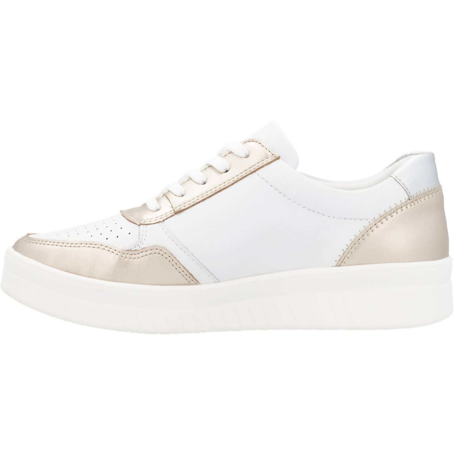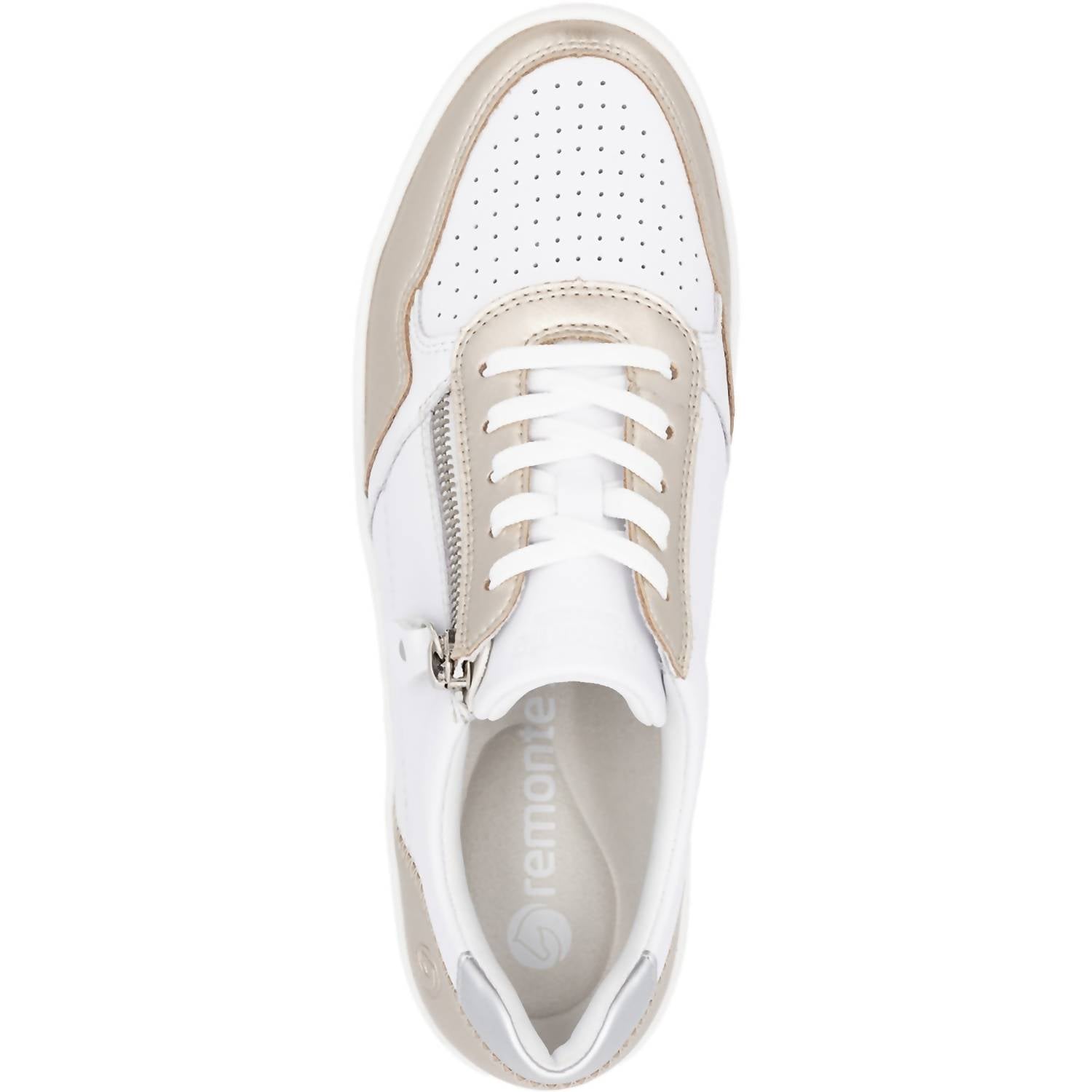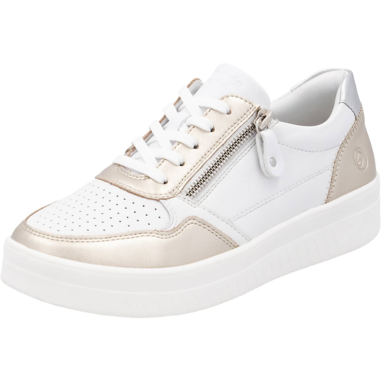 Cute, functional, and comfortable. These sneakers check all the boxes. Experience style and comfort with the Women's Kendra 01 Leather Sneakers by Remonte, crafted with a 100% leather and mesh upper for exceptional breathability and all-day comfort. With their minimalist design in pale gold, weiss, and silver, these sneakers offer a versatile addition to your spring wardrobe. Featuring a cushioned Remonte insole and a round toe shape, they promise a comfortable fit for medium-width feet. Ideal for travel and casual outings, these flat-heeled sneakers are perfect for those who value both style and functionality.