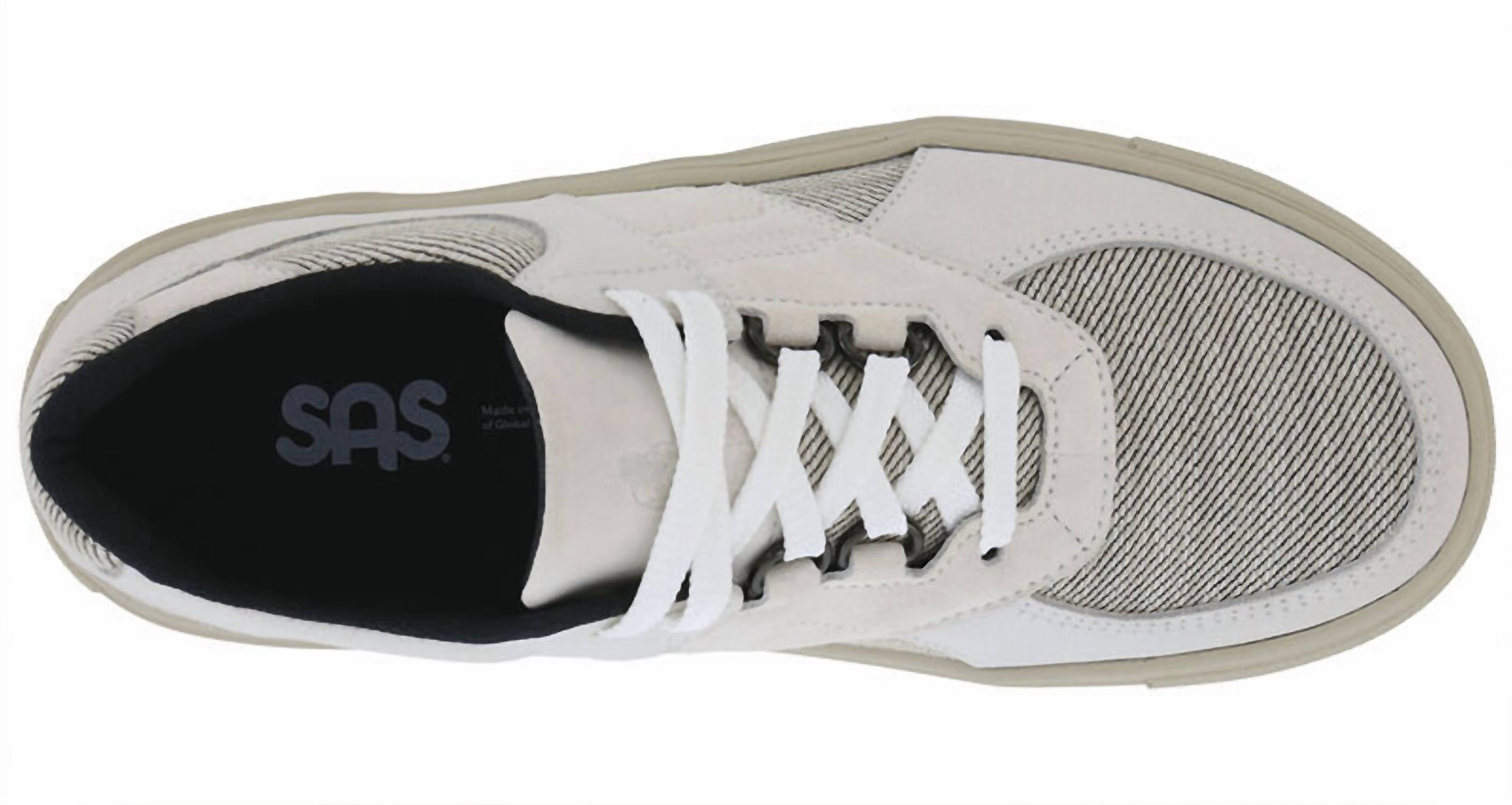 Get your daily steps in with these adorable sneakers. Combination of Genuine Leather, Breathable Mesh, or Woven Twill Textile (Upper), Textile (Footbed Lining), PU Foam (Footbed), Polyurethane (Outsole). The removable footbed can be cleaned with the SAS Footbed Cleaner Kit; wipe the rest with a damp cloth.