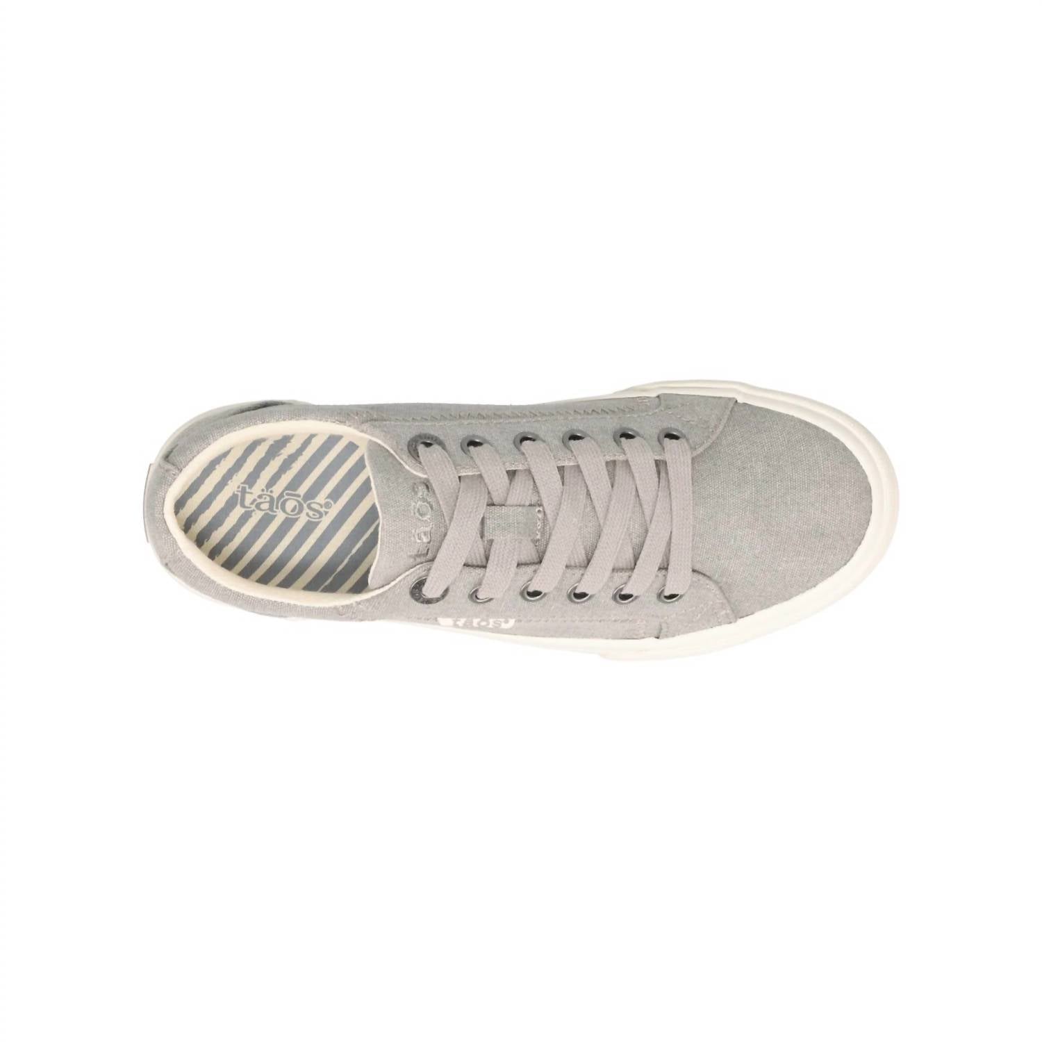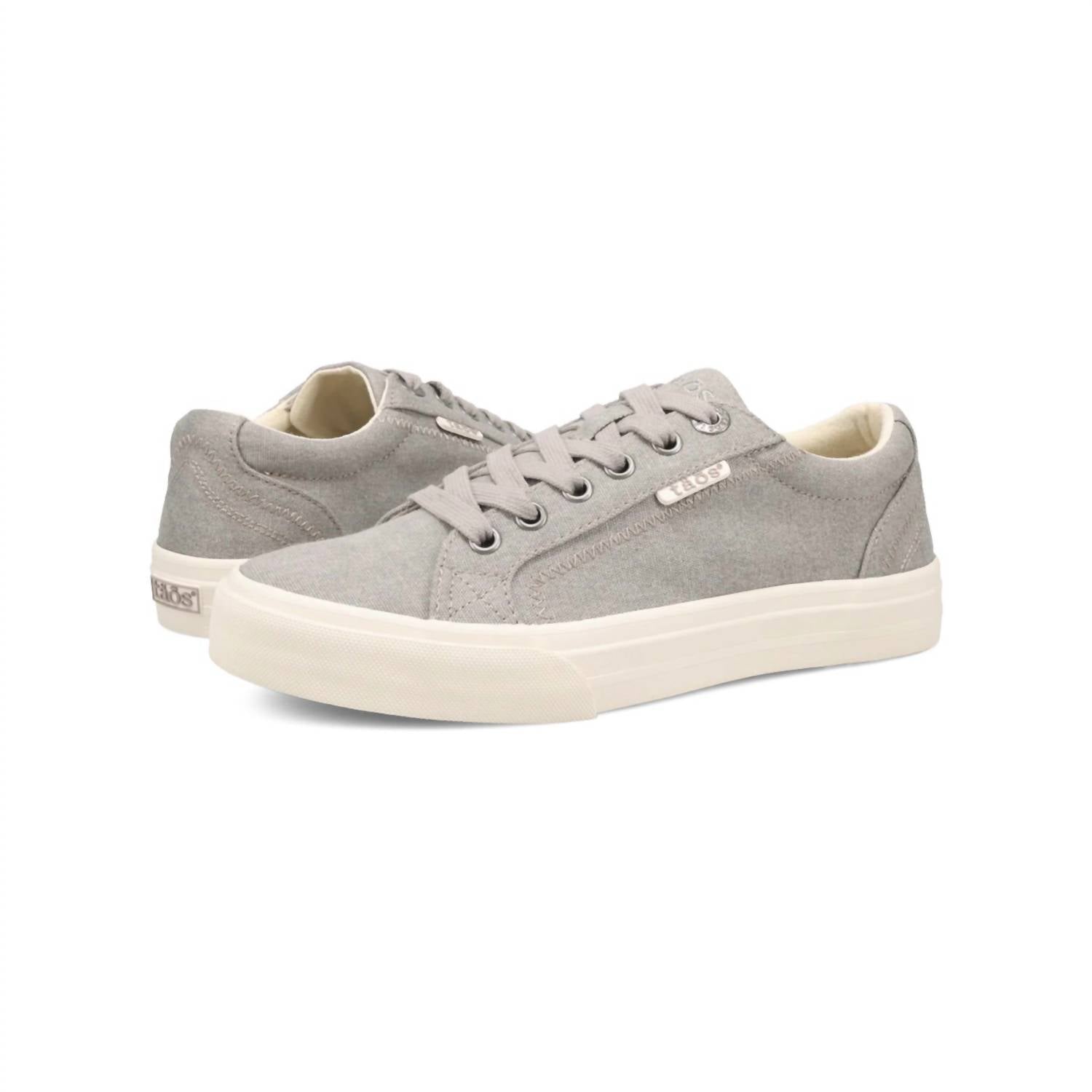 Cute, functional, and comfortable. These sneakers check all the boxes. The Taos Women's Plim Soul Canvas Sneakers are crafted in a chic Grey Washed hue, perfect for any casual outing. Designed with a canvas upper and lining, they feature decorative stitching and a Curves and Pods removable footbed for custom comfort. The insole is a poly-canvas blend with built-in arch and metatarsal support, complemented by a flexible, durable rubber outsole. Ideal for summer travel, these sneakers provide exceptional cushioning through Soft Support technology with Cool Recovery Foam.