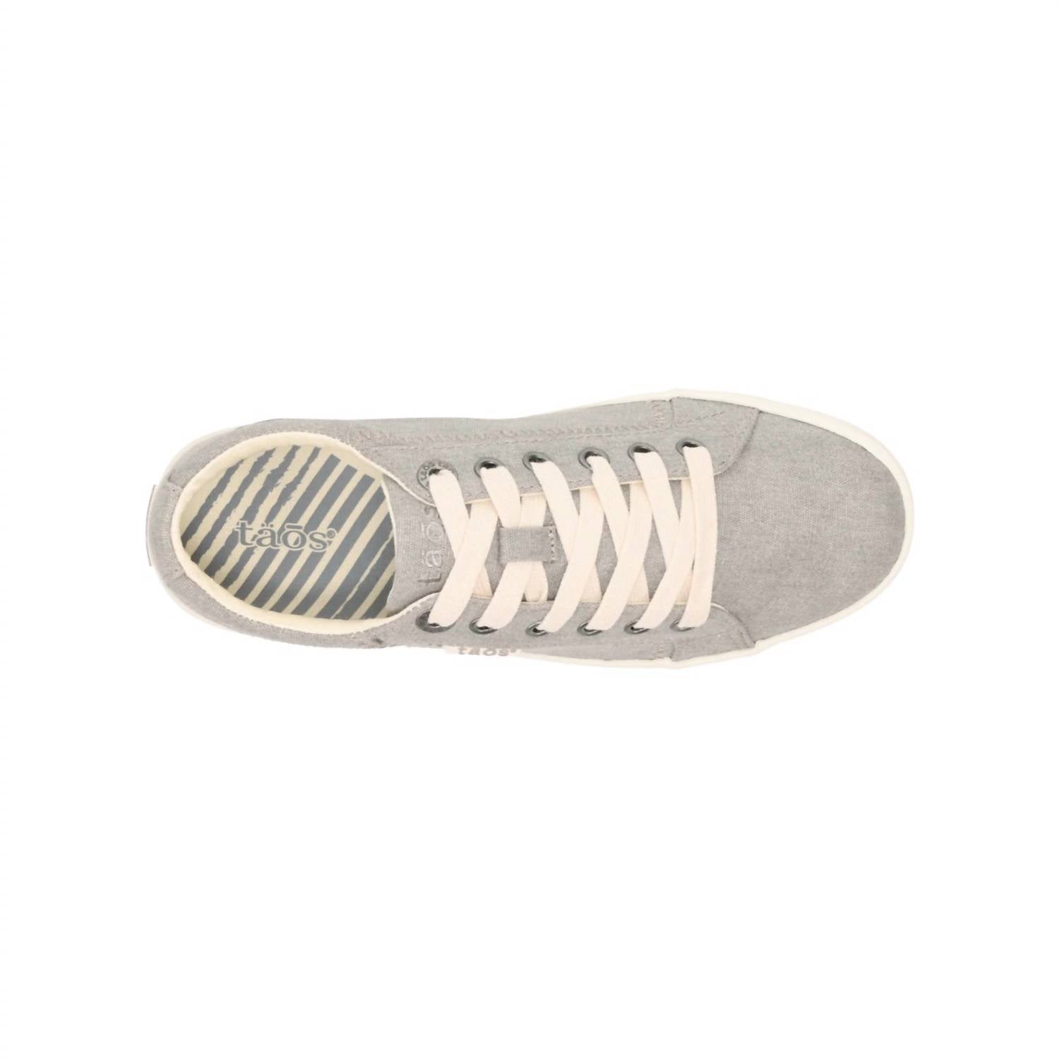 Elevate your casual footwear with the Women's Star Canvas Sneakers by Taos, crafted for ultimate comfort and style. Featuring a canvas upper and leather linings, these sneakers seamlessly blend breathability and luxury. The lace-up design offers adjustability, while the round toe and flat heel ensure a comfortable fit. Equipped with a flexible, durable rubber outsole, these shoes are perfect for your travels or everyday outings. The Polyurethane Curves and Pods footbed, lined with canvas, provides exceptional support with soft Cool Recovery Foam cushioning.