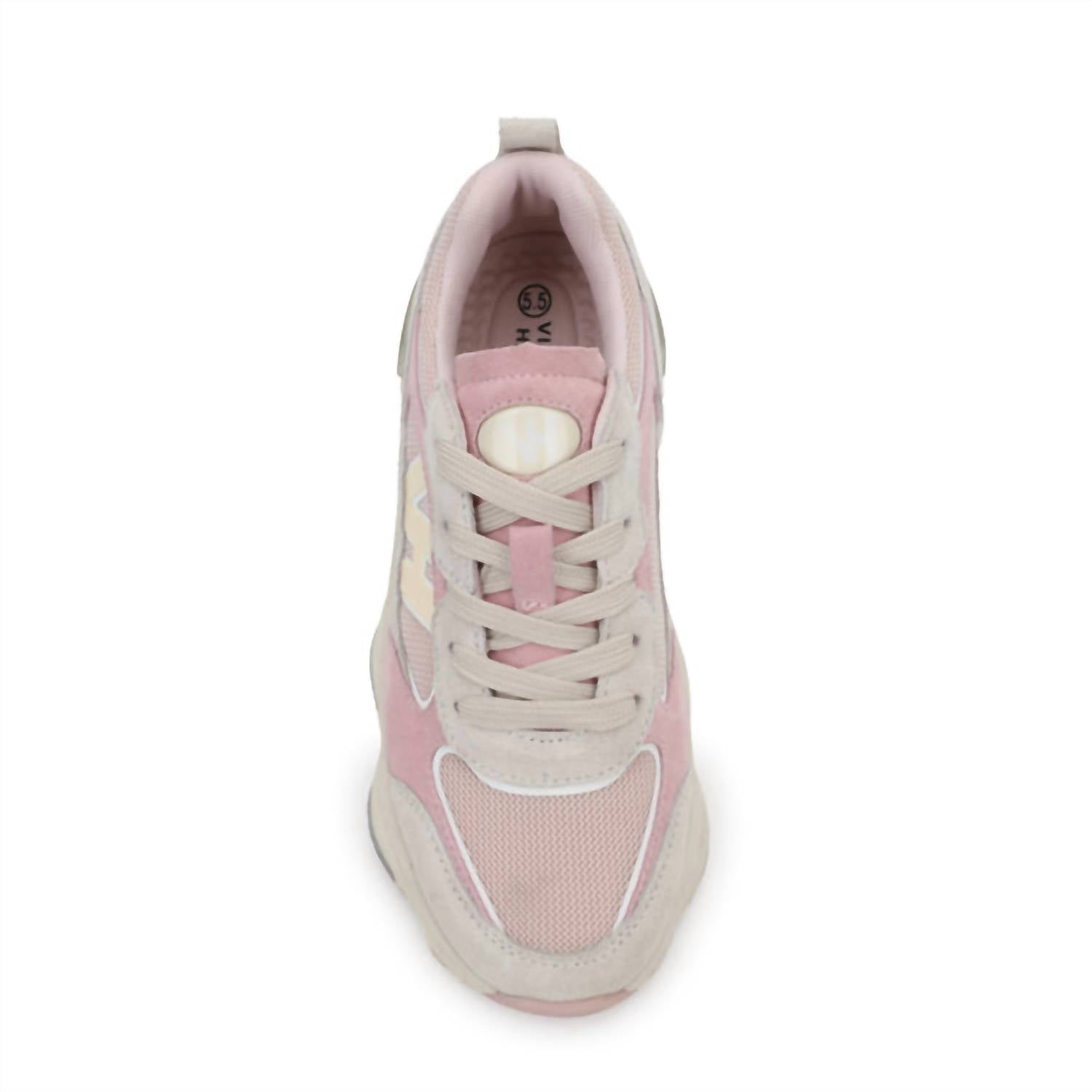 Meet the Women's Dash 3 Sneaker by Vintage Havana, a chic and stylish alternative to traditional runners. These sneakers feature a round toe design and a flat heel, perfect for both everyday wear and workouts. Highlighted by a pop of soft pink in the logo, they serve as a fashionable addition to any ensemble. Available in a versatile grey and pink colorway, these sneakers are crafted for comfort and style.