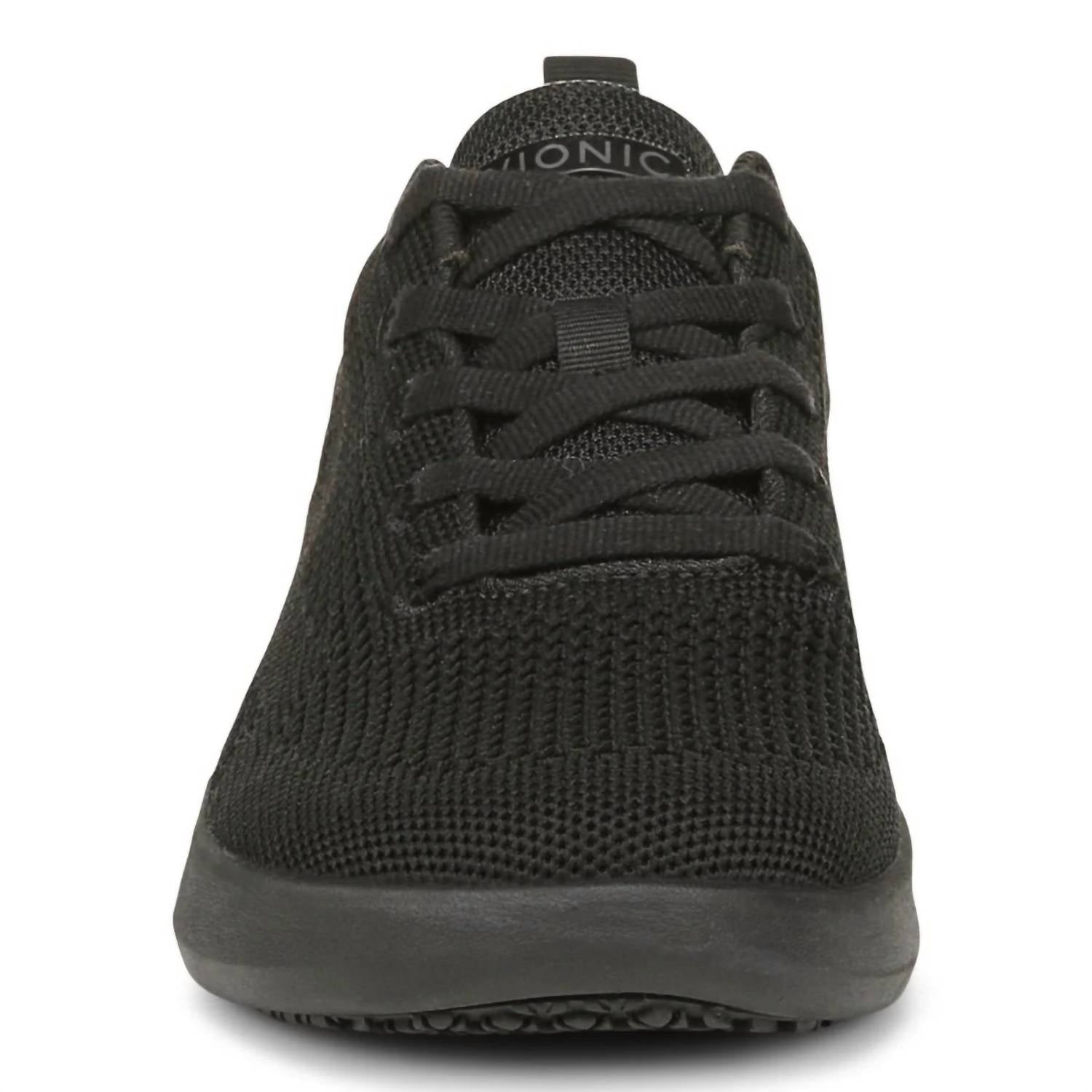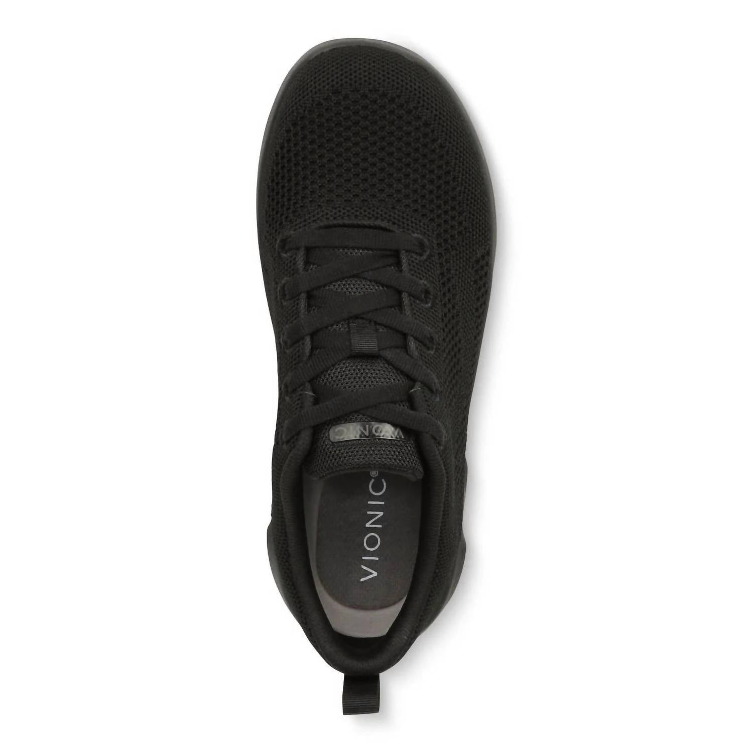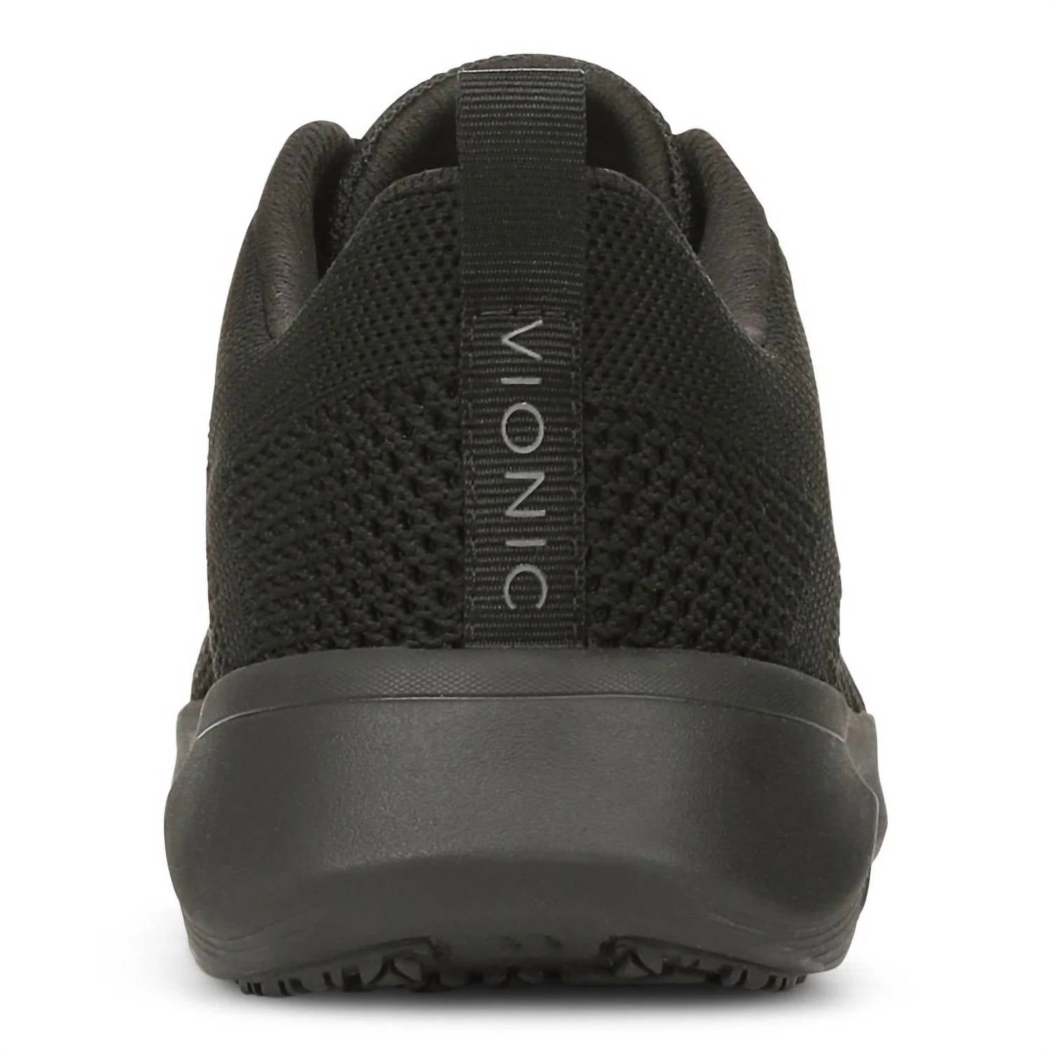 Step into comfort with the VIONIC Women's Arrival Sneaker in monochrome black, a must-have for your travel adventures this fall. These sneakers feature a foot-forming breathable mesh upper and a durable rubber outsole with VIO-GRIP technology for superior traction even on slippery surfaces. The removable mesh-covered EVA footbed and VIO MOTION TECHNOLOGY provide exceptional stability, cushioning, and arch support for low-impact wear. Enjoy a flattering flat heel design with a 1.87" heel height and 1.12" platform, perfect for those always on the move.
