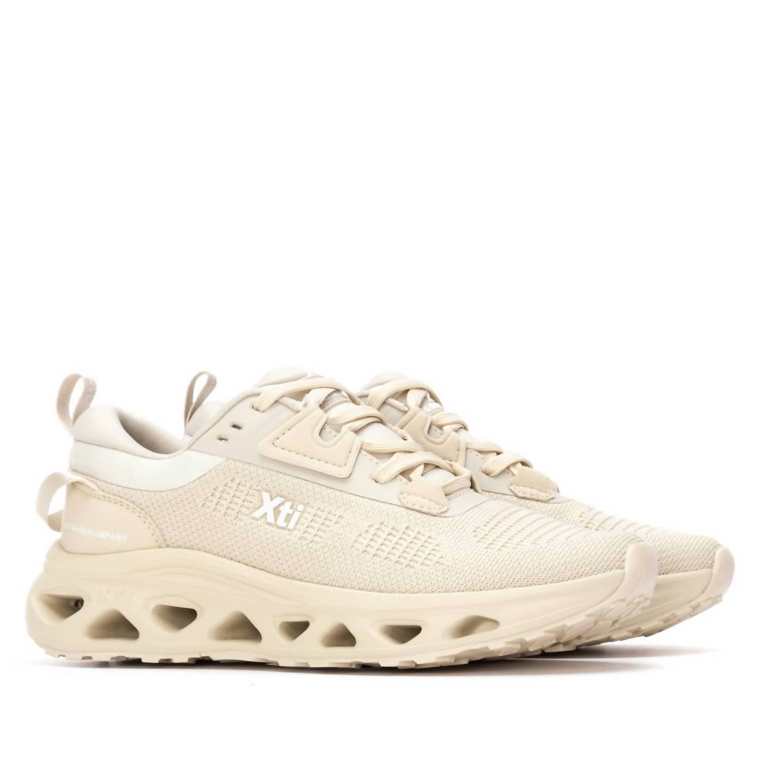Elevate your athleisure wardrobe with Xti’s Women’s Round Toe 144543 Sneakers in a trendy beige shade. These medium-width sneakers feature a flat heel for optimal comfort, making them perfect for fitness or workout sessions. Crafted with the finest materials and expert craftsmanship, they blend style and comfort effortlessly. Ideal for casual outings or special occasions, these sneakers ensure you step out in confidence.