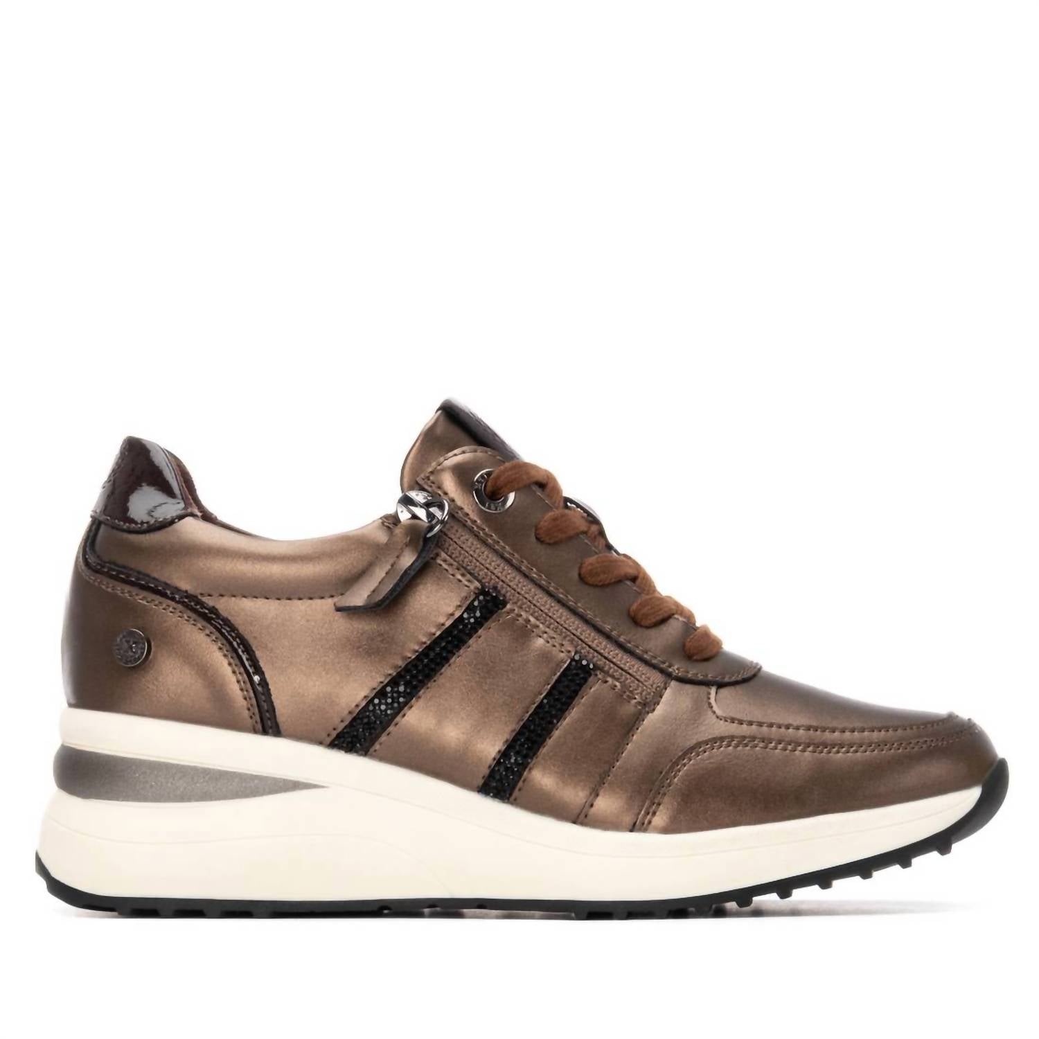 Step into style with the Women's 144407 Round Toe Sneakers by Xti, where every casual outing or dinner party becomes an opportunity to shine. Crafted from premium leather, these shoes exude minimalist elegance and are designed in a sophisticated bronze shade. With a flat heel and medium width, they promise all-day comfort without compromising on style. Perfect for spring occasions like Thanksgiving, these sneakers blend expert craftsmanship with timeless appeal.