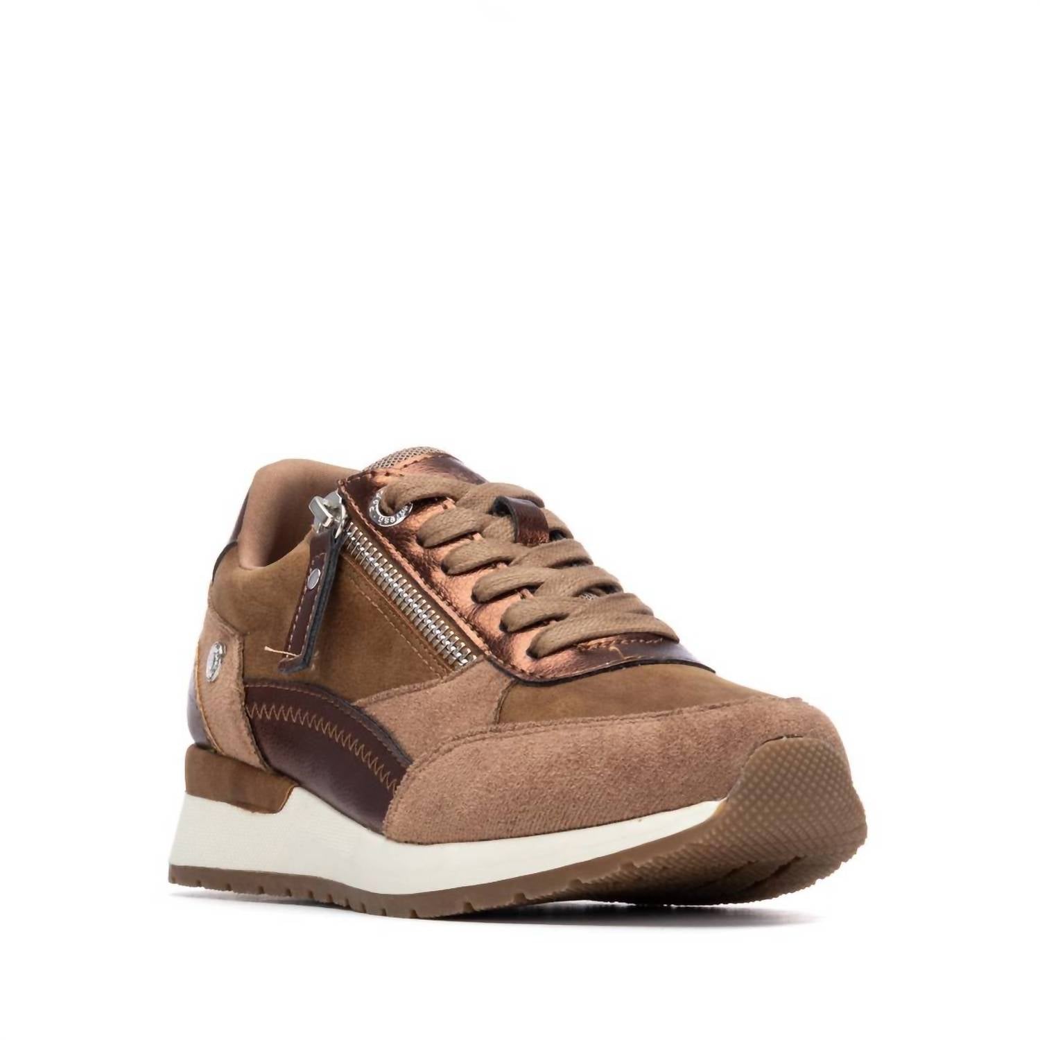When fashion and function come together seamlessly. Elevate your summer style with the Women's Refresh 172959 Sneakers by Xti, tailored for athleisure enthusiasts. These sneakers feature a stylish camel color, medium width, and a flat heel under 1 inch, perfect for fitness or casual outings. Designed with a round toe shape, they blend seamlessly into any wardrobe. Step confidently into summer with Xti's expert craftsmanship and commitment to quality.