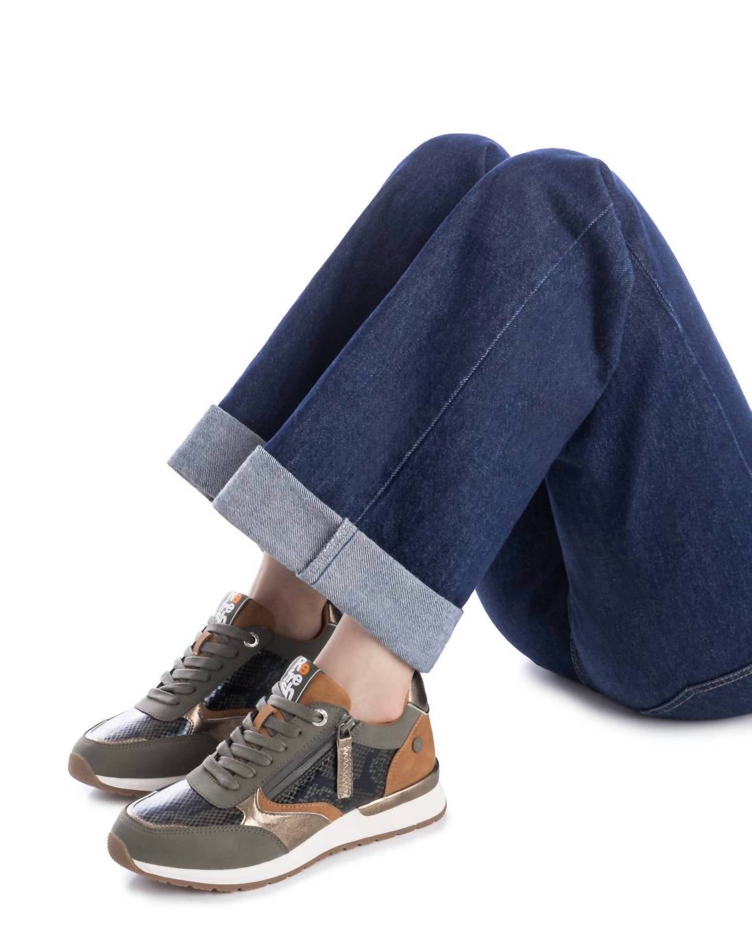 Get your daily steps in with these adorable sneakers. Discover the Xti Women's Refresh 173177 Sneakers, a must-have for those seeking style and comfort. Crafted with premium leather, these kakhi sneakers feature a medium width and a flat heel for a comfortable fit. Their round toe design adds a classic touch, making them perfect for athleisure wear, especially on game days. Step into summer with confidence in these fashionable sneakers that bring a touch of sophistication to casual outings.