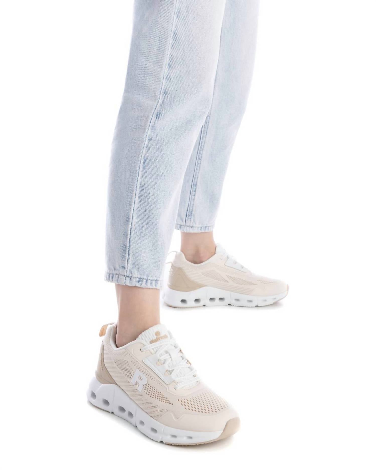 Get your daily steps in with these adorable sneakers. Step into chic comfort with the Women's Casual Trainer Sneakers by Xti, a perfect blend of style and ease. Designed with technical synthetic fabric, these trainers feature a rear puller for easy wear. They boast an adjustable lace closure, a comfortable cushioned sole, and a flexible non-slip rubber outsole, complemented by a removable insole. Certified vegan by PETA, these round-toe shoes provide a low flat heel, making them an ideal casual choice for every occasion.