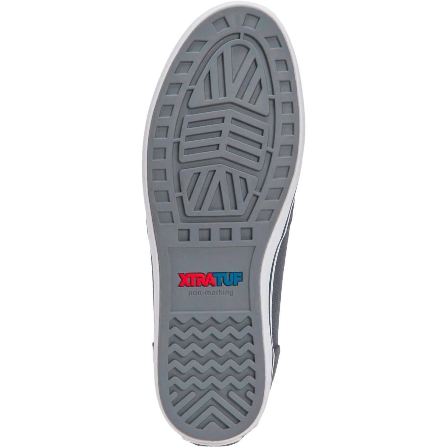 Introducing the Men's Sharkbyte Eco Deck Shoes by XTRATUF, perfect for a stylish holiday party or summer occasion. Crafted from durable nylon, these sneakers feature a flat heel and round toe for comfort and practicality. Embrace effortless style with these versatile men's shoes, designed for adult comfort and flair.