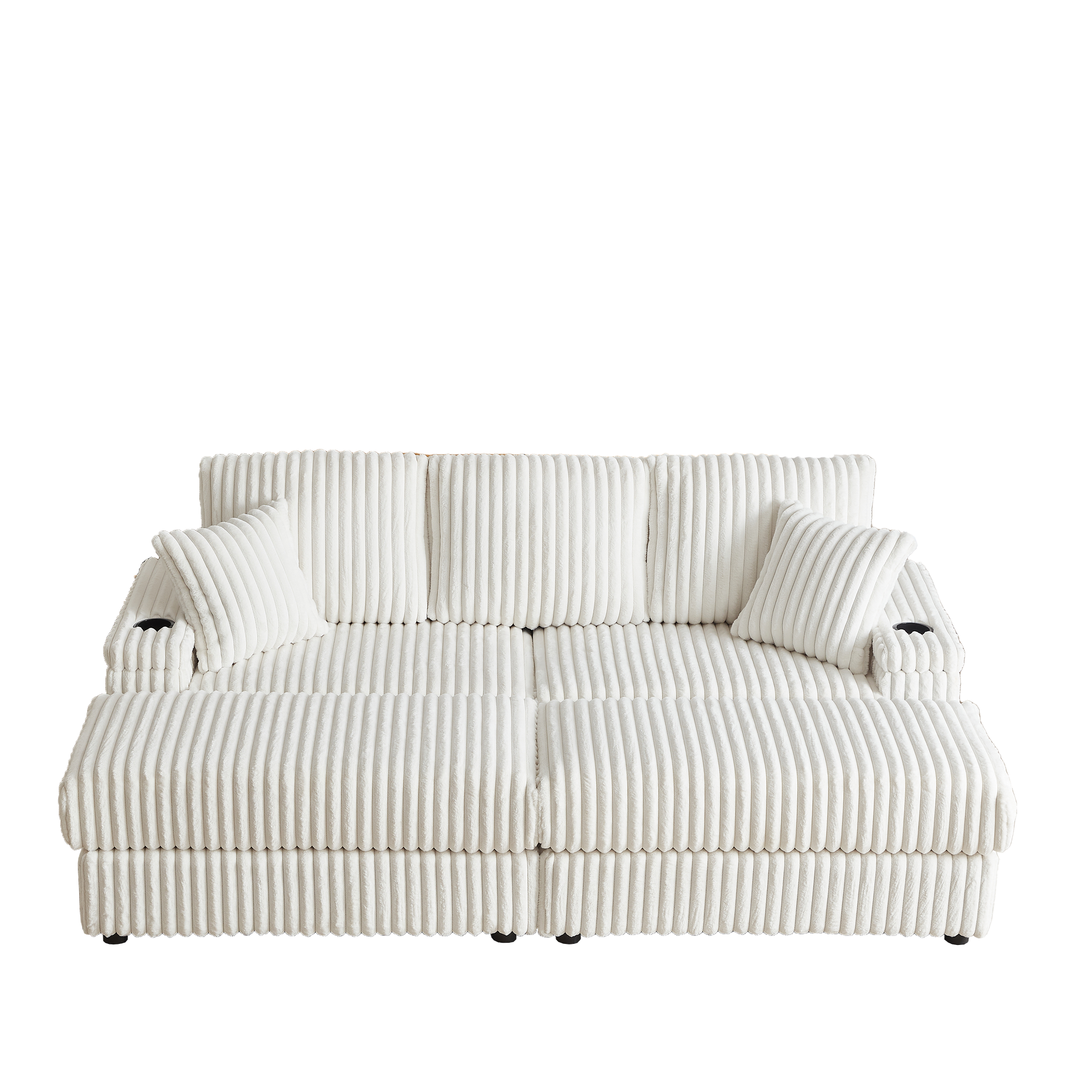 84-Inch Corduroy 3-Seater Sofa with Pillows and Ottomans